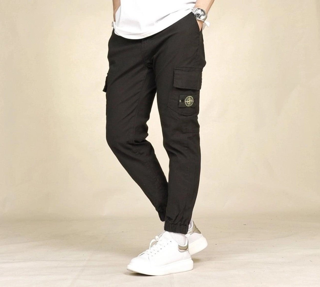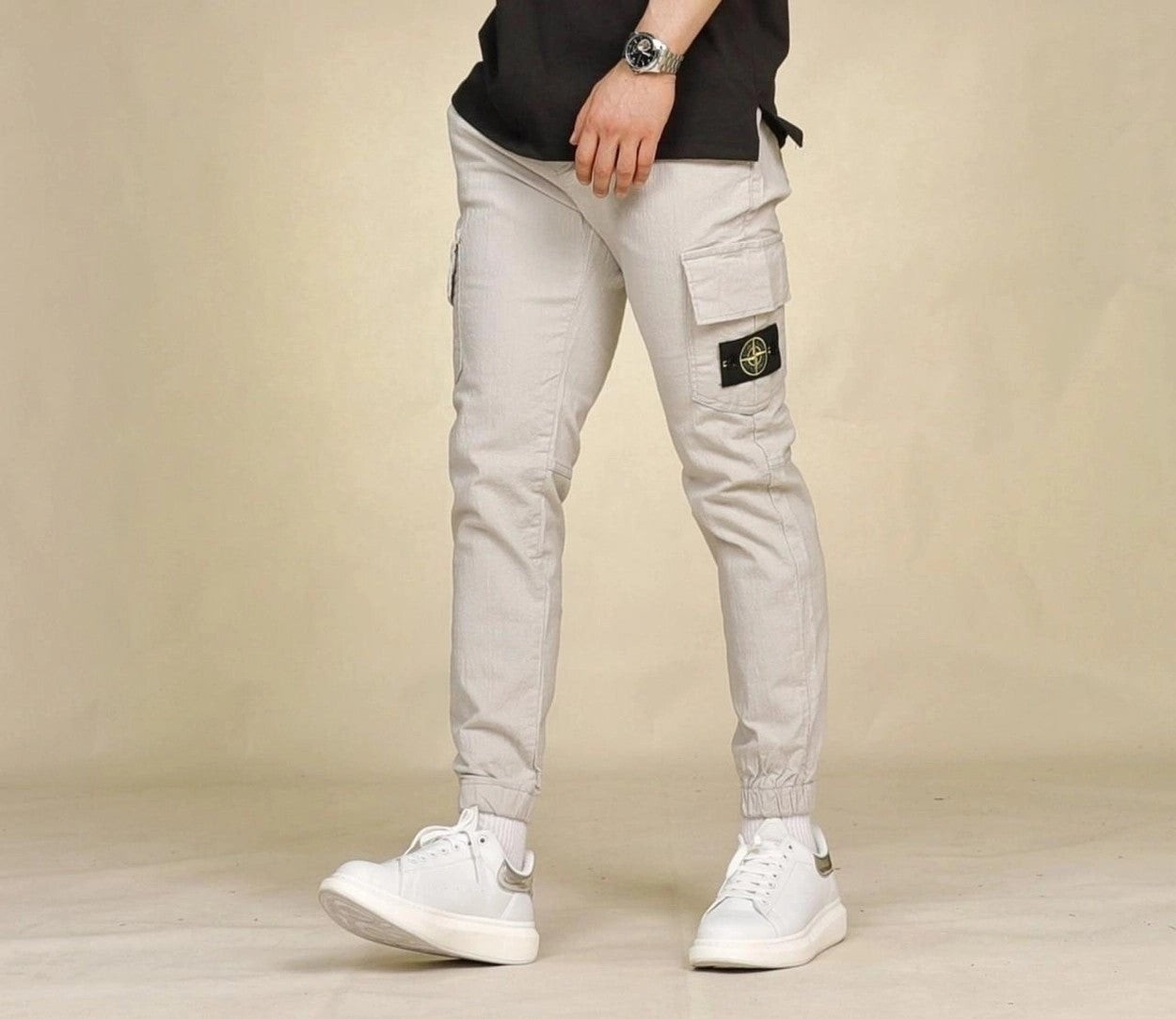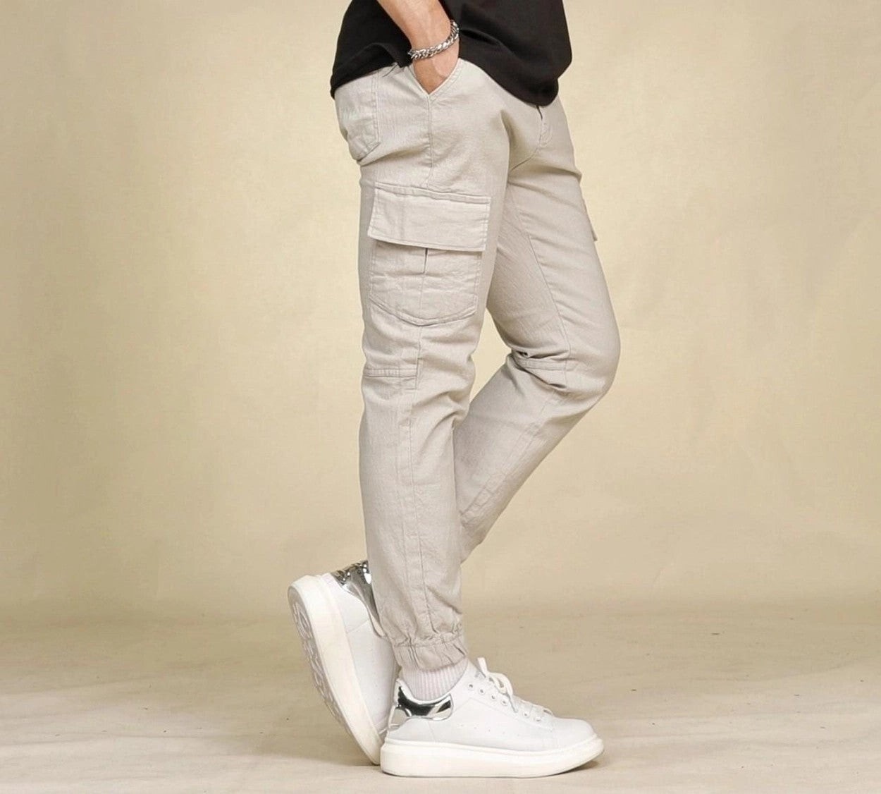 착용감과 신축성 좋은 면스판 원단을 이용하여 카고 조거 스타일로 제작한 제품으로 언제나 깔끔하고 편안한 스타일링이 가능한 제품입니다.