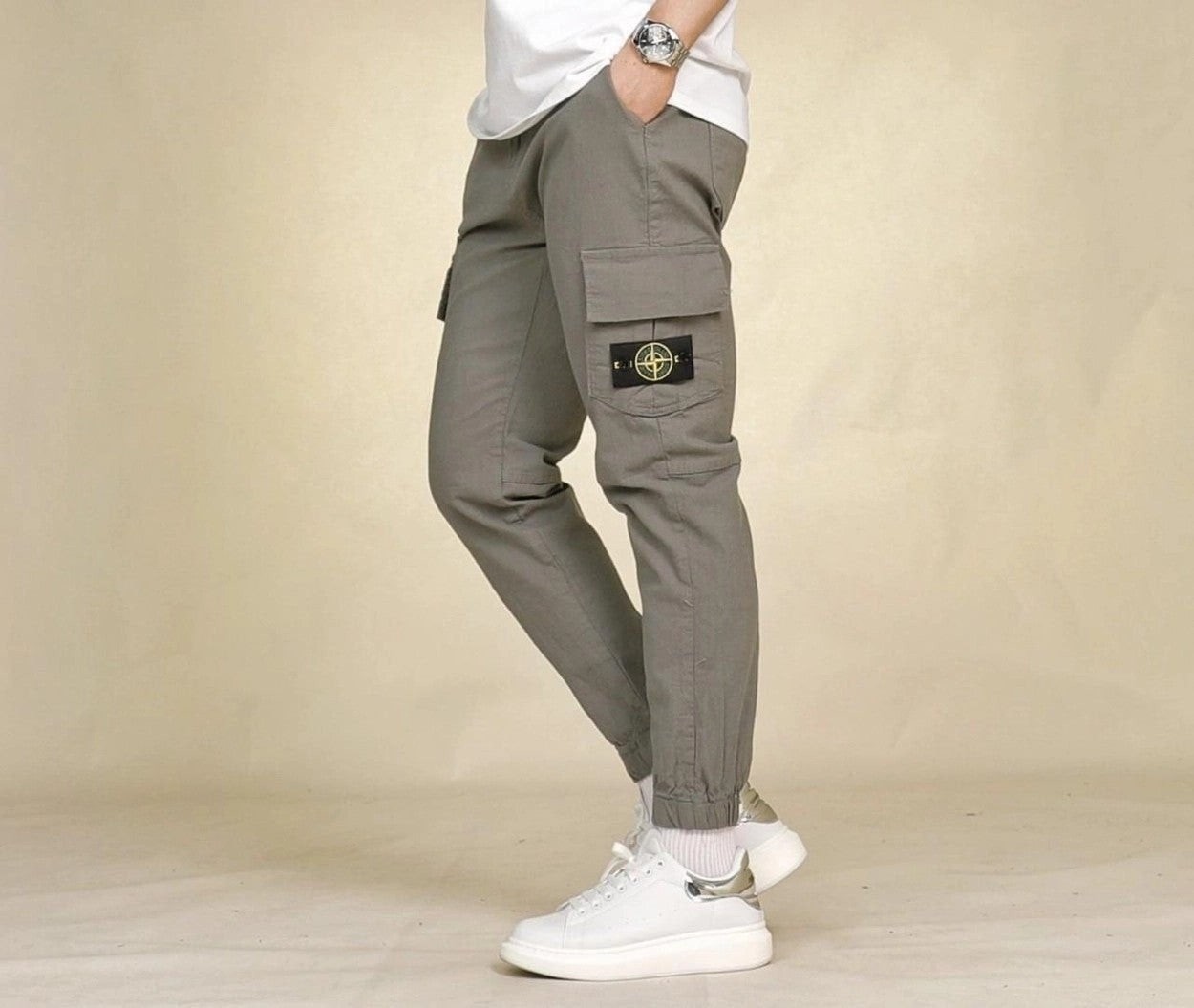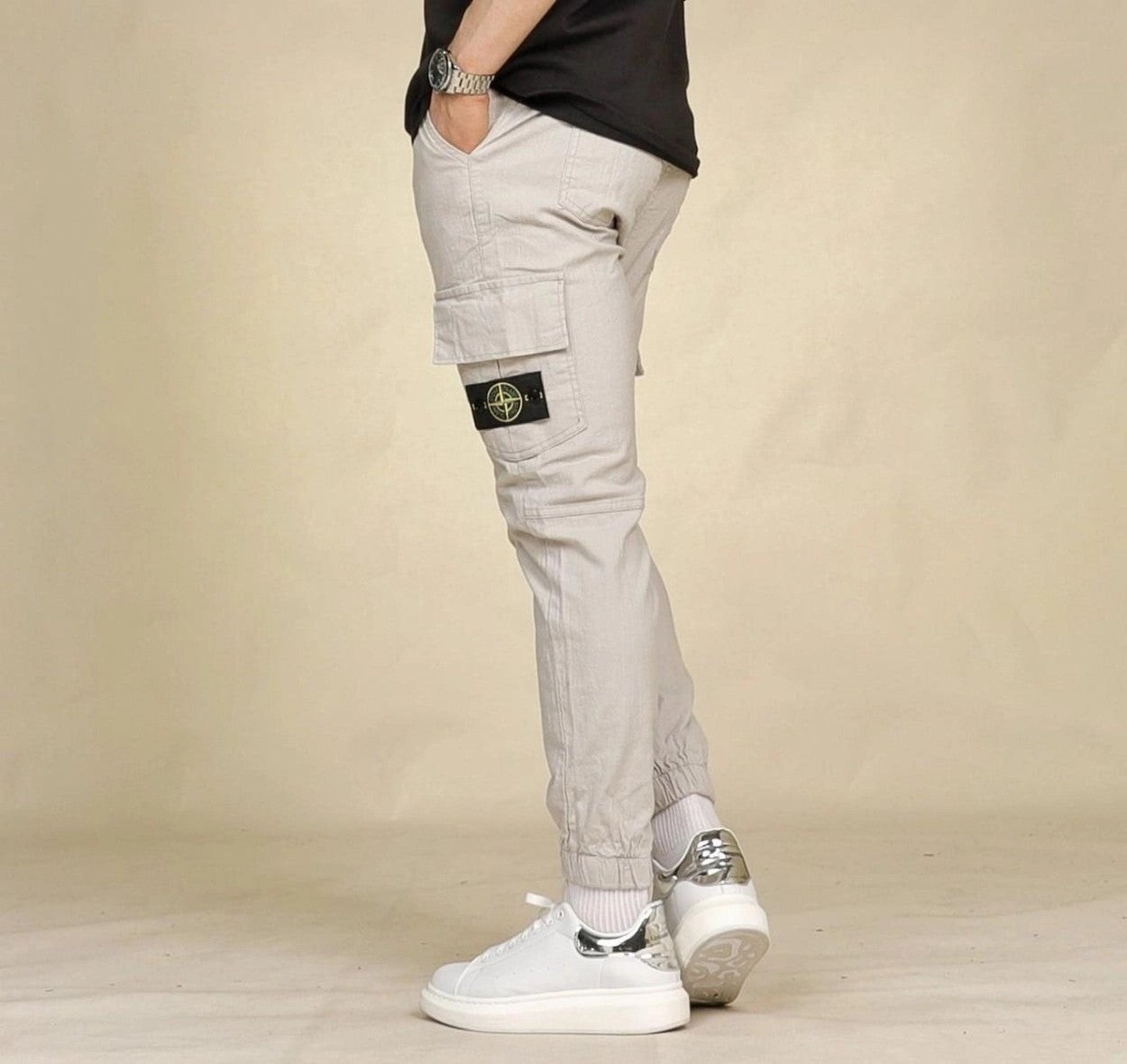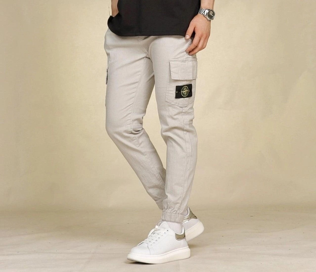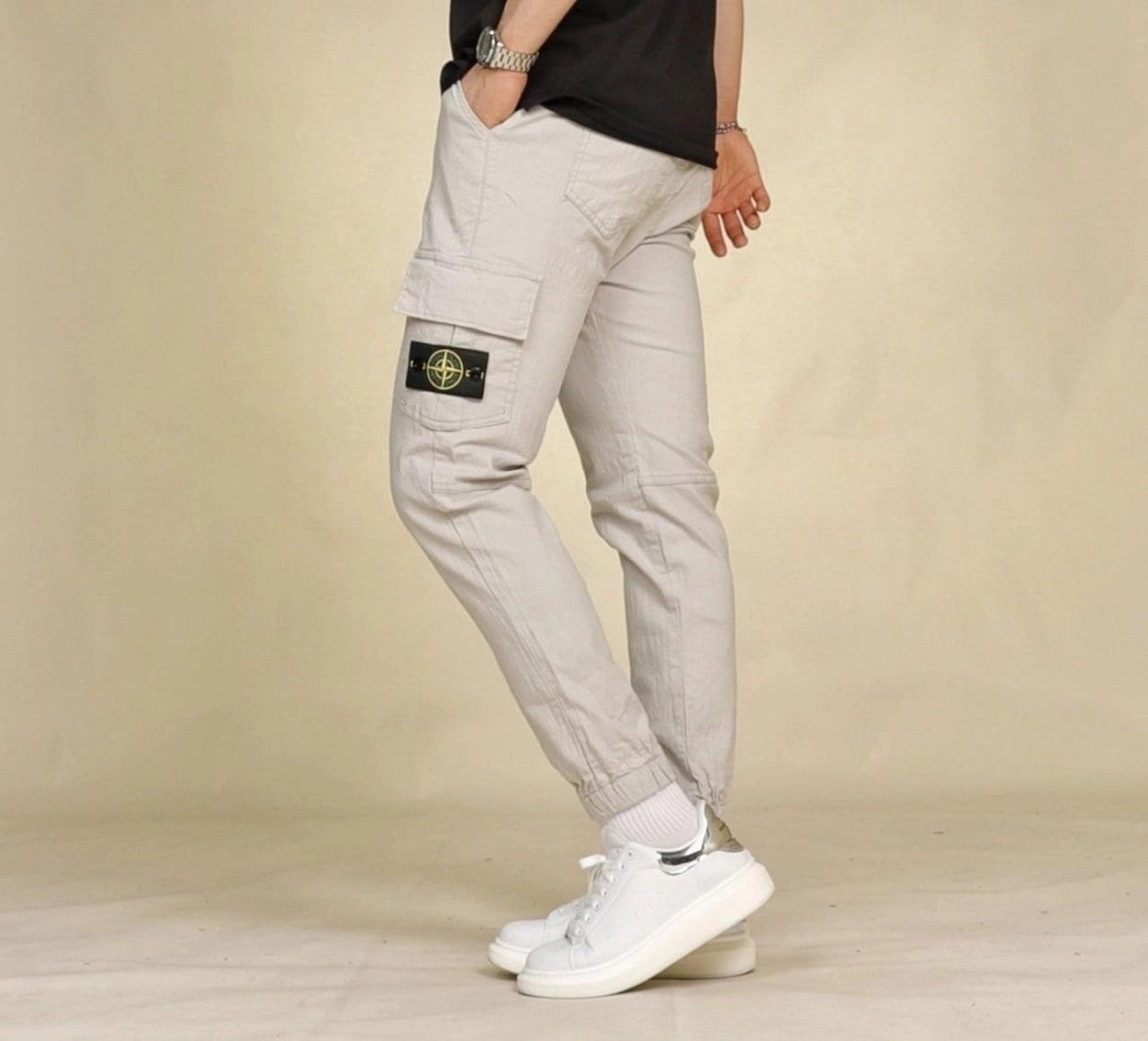 착용감과 신축성 좋은 면스판 원단을 이용하여 카고 조거 스타일로 제작한 제품으로 언제나 깔끔하고 편안한 스타일링이 가능한 제품입니다.