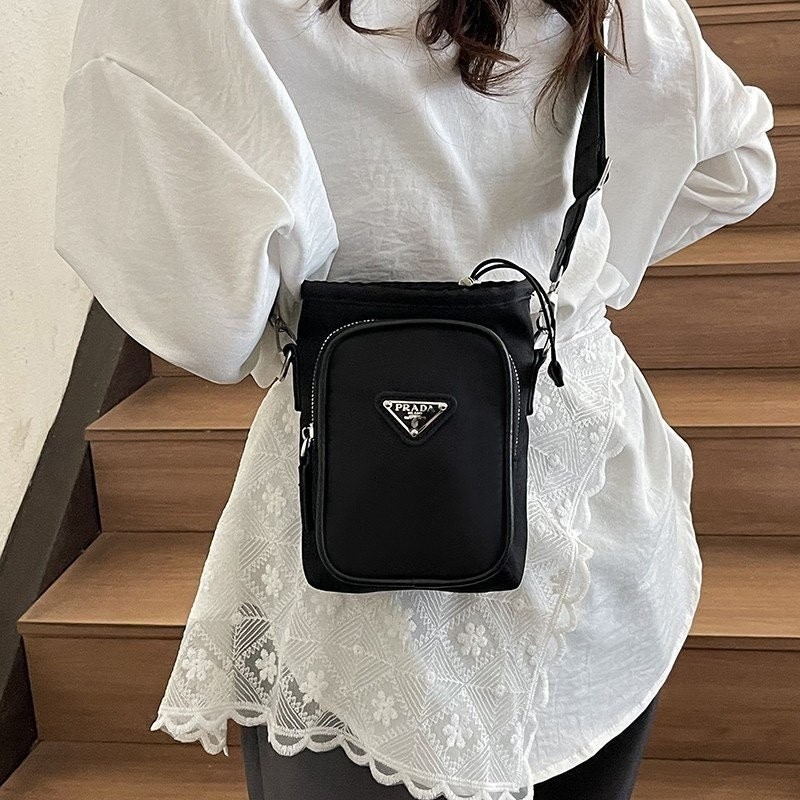 디자인으로가볍고 실용적인 브랜드 특장점 나일론 소재에 시그니처 삼각로고가 포인트인 디자인