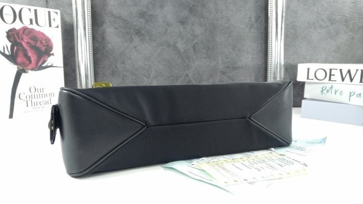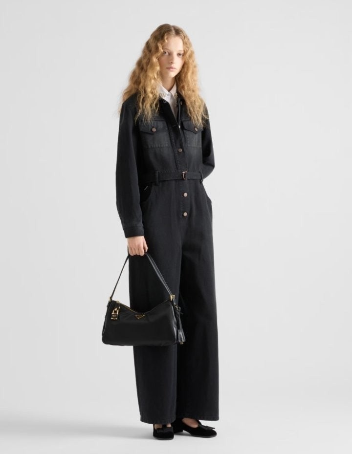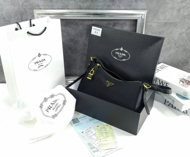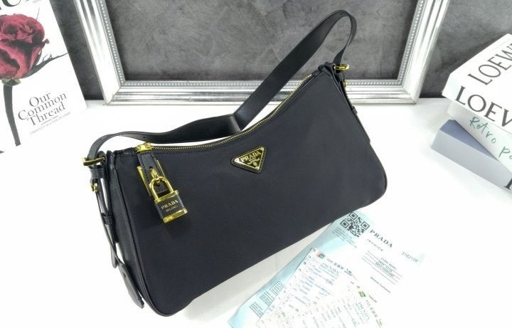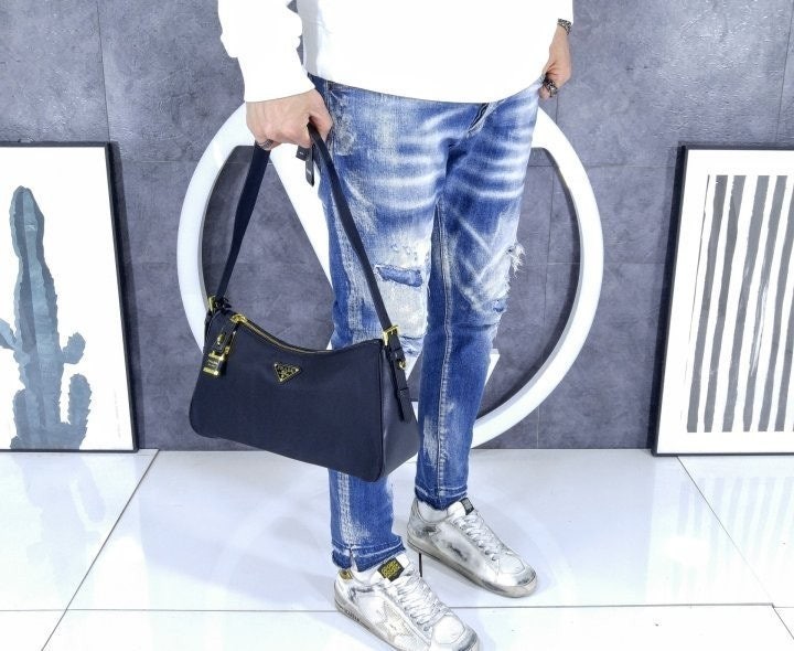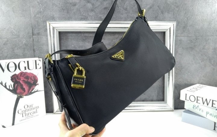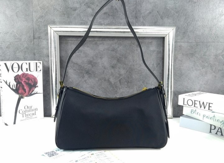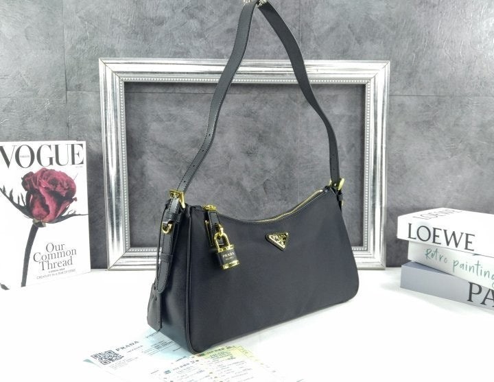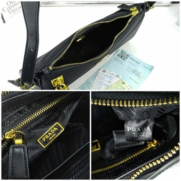 세련된 가죽 디테일이 돋보이는 리나일론 소재의 숄더백으로 모던하고 활용도 높은 디자인이 특징입니다. 지퍼 및 자물쇠 클로저가 있는 넉넉한 사이즈의 백이며 메탈 트라이앵글 로고로 장식되어 있습니다.
