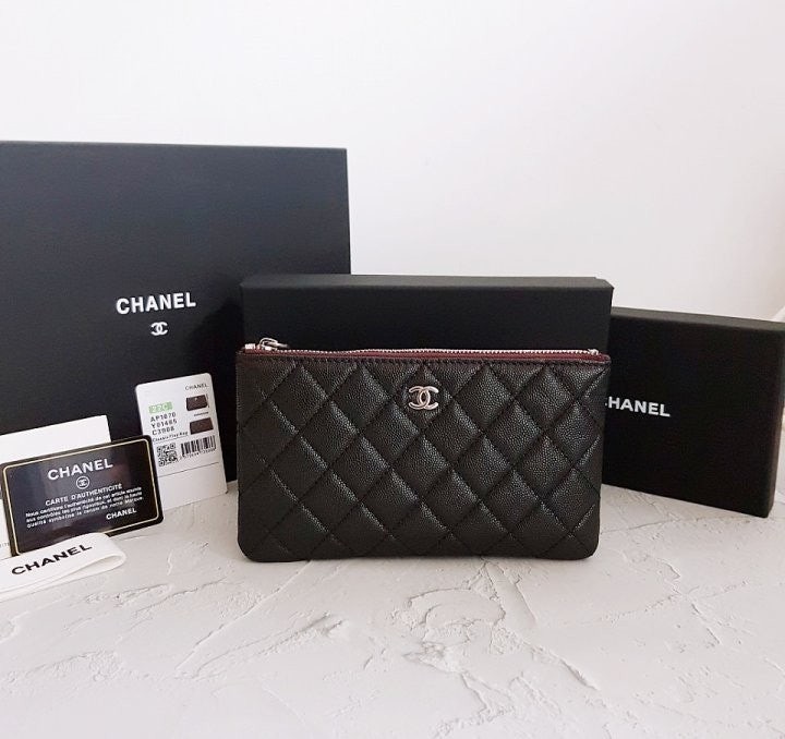 • 샤* 고급 박스 캐비어 파우치 클러치 은장 스몰