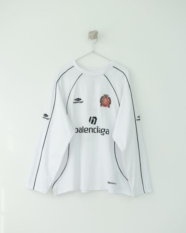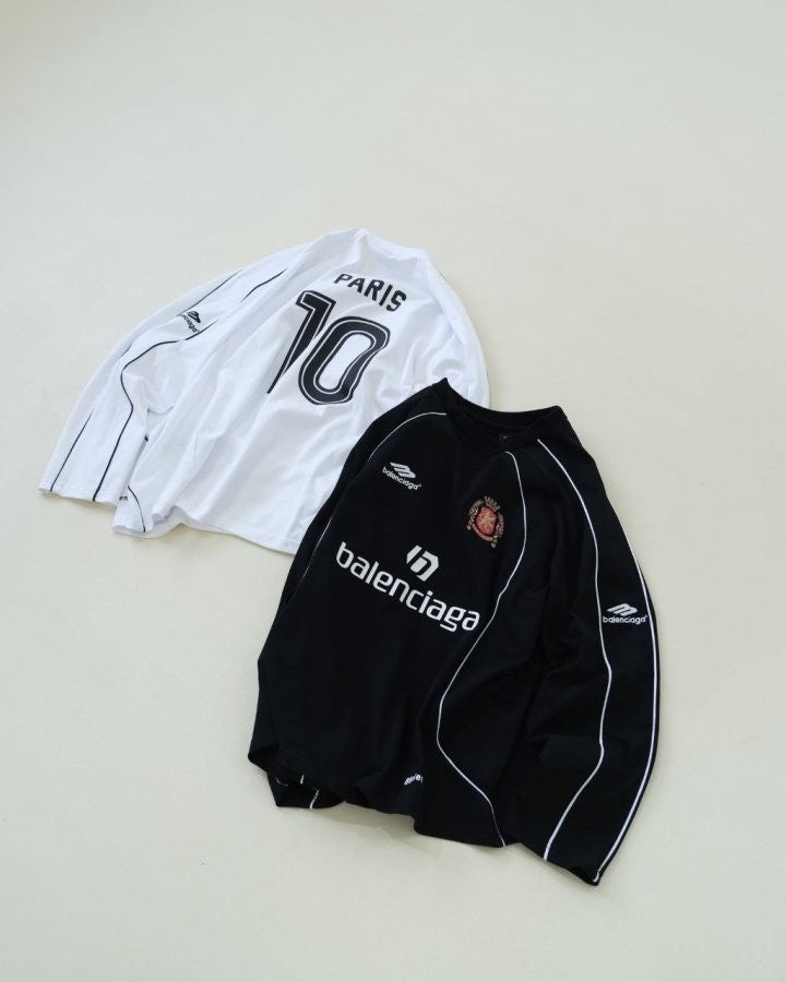 •BALENCIA** 24 한정판 파리 사커 10 넘버 롱슬리브 입니다. 원단은 300g 순면으로 직조 및 염색 처리되어 있으며, 단단하고 형태가 유지되는 최고급 원단 입니다. 시중에 저렴한 얇은 버전과는 차별화됩니다! 12개의 조각으로 제작된 이 제품은 8개의 그래픽 프린트와 자수가 포함되어 있으며, 공정이 매우 복잡한 디자인 입니다. 일반 티셔츠 3개에 해당하는 작업량이 들어갑니다. 자수는 섬세한 바늘로 촘촘히 작업되어 입체감이 뛰어나고 풍부한 효과를 자랑하며, 뒷면의 프린트는 타원형 기계로 인쇄되고, 목 부분은 새로운 십자 리브 공법으로 디자인되었습니다. 부자재, 악세서리, 포장 모두 최고급 품질 자부 드리며 많은 인플루언서와 스타들이 착용하는 제품으로 강력 추천 드리는 아이템 입니다!