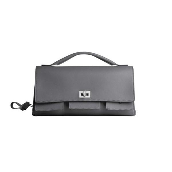 그레이 스무드 카프스킨 소재의 벨 에어 클러치 온 스트랩 스몰, 빈티지 실버 장식