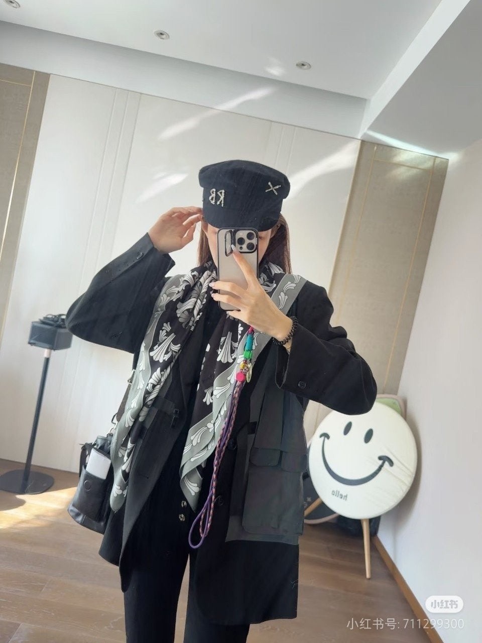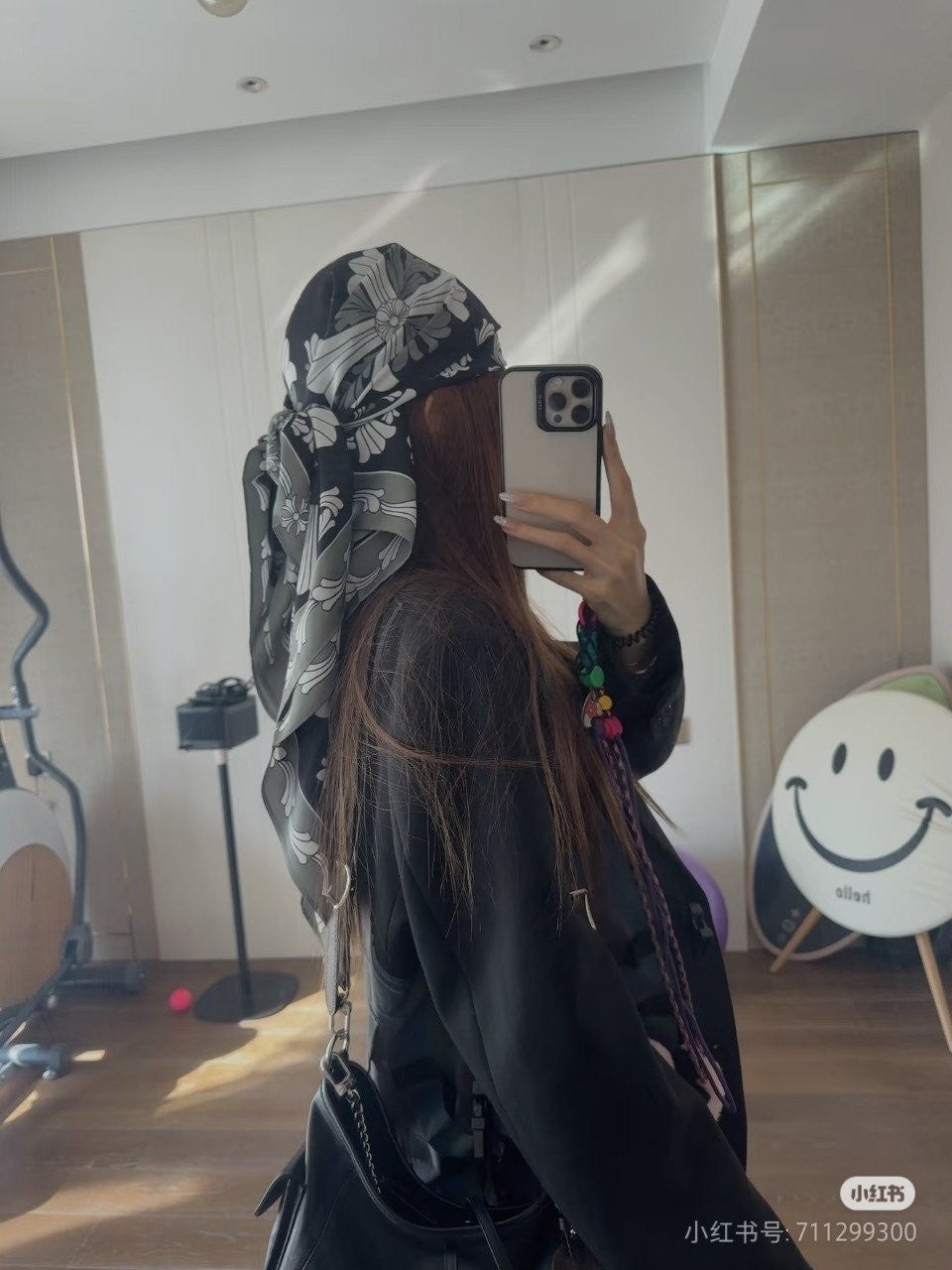 크* 시그니쳐 문양 블랙 사각 스카프