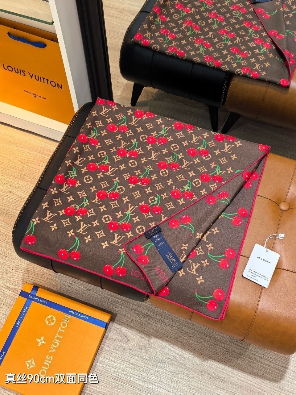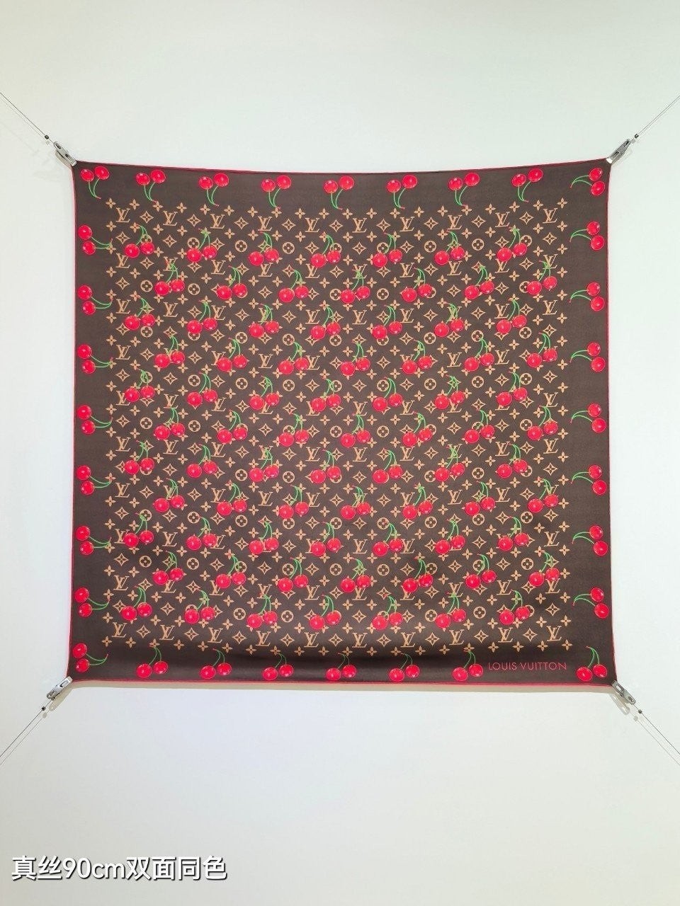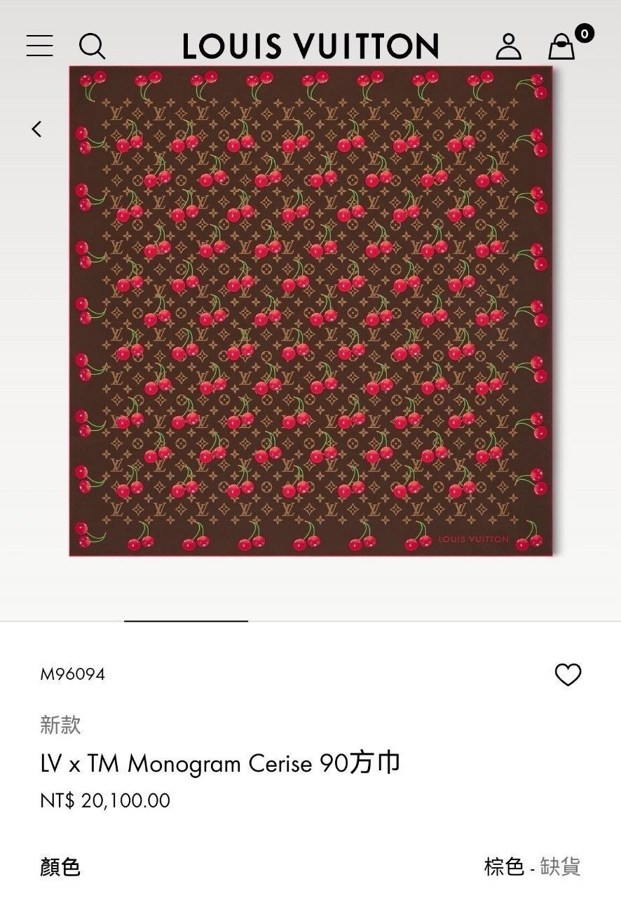 • 루* 모노그램 체리 패턴 브라운사각 스카프