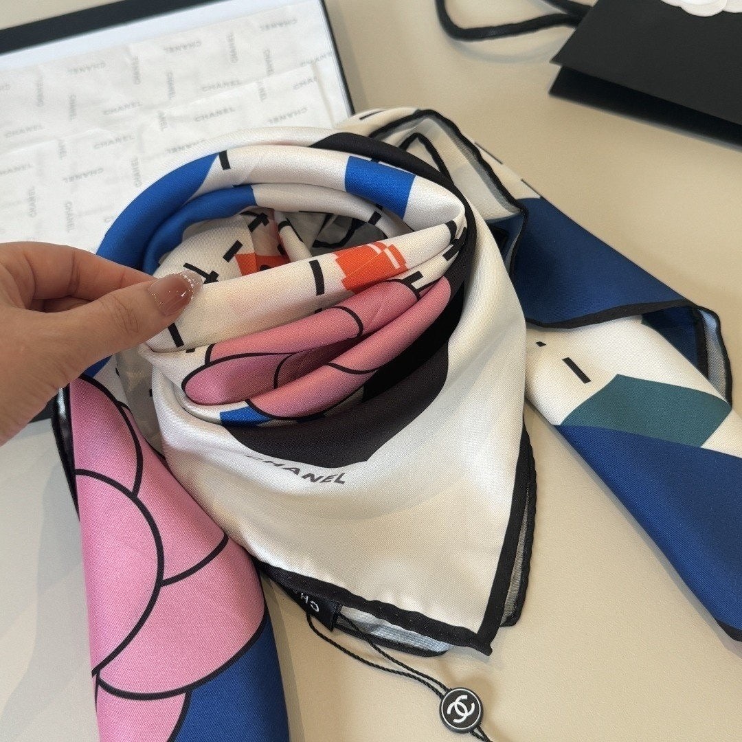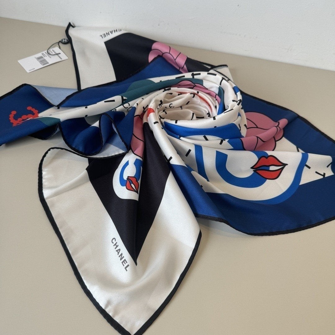 • 샤* Lip 패턴 네이비 사각 스카프