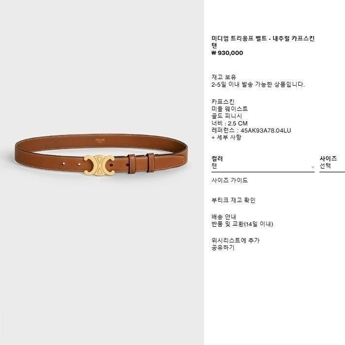 *색상 : 버클-골드 / 가죽-탠