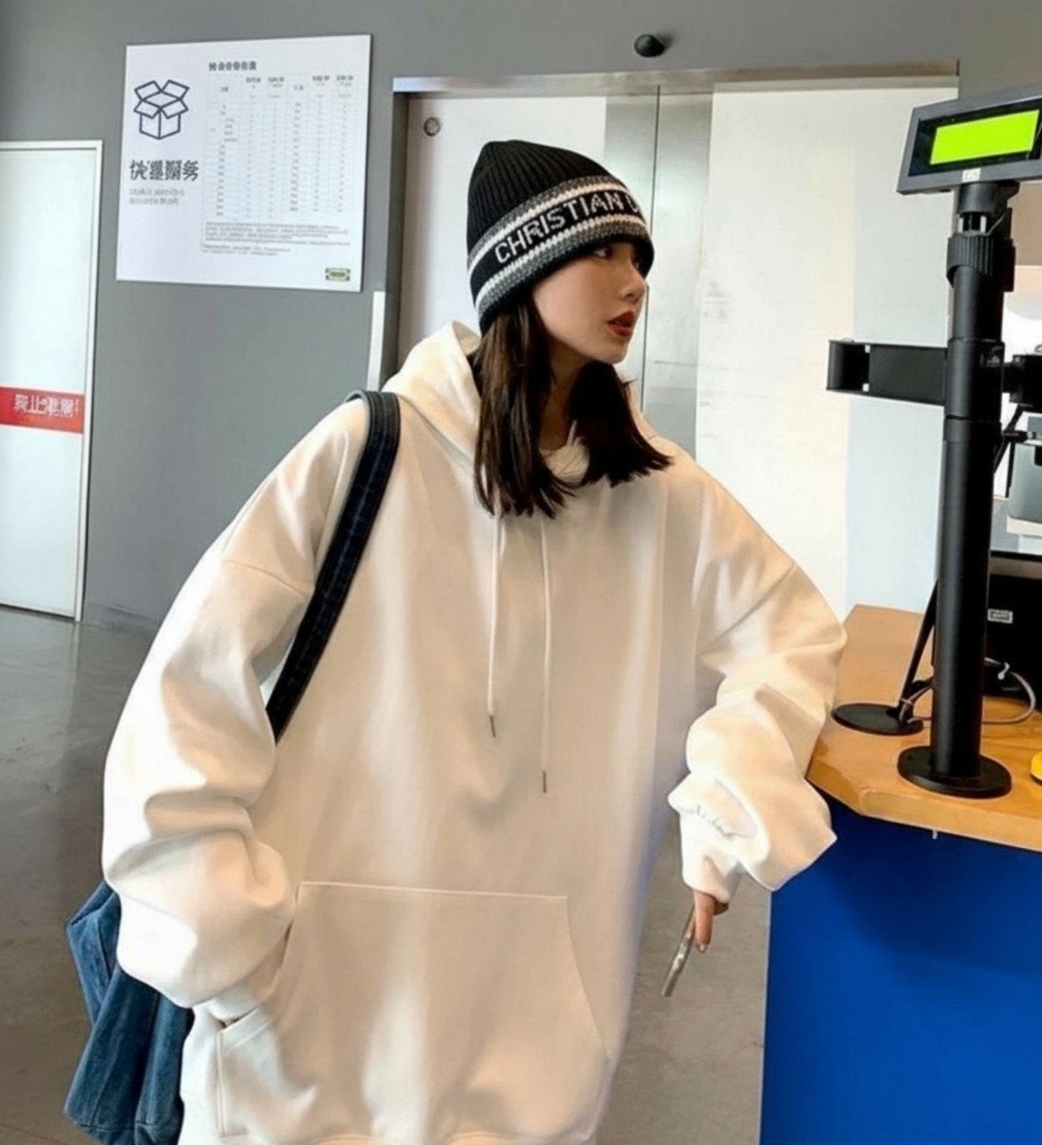 디* 로고 자가드 울캐시 비니수입풀