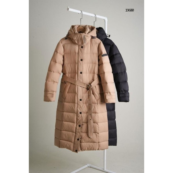 버** 여성 구스다운 벨티드 롱 패딩