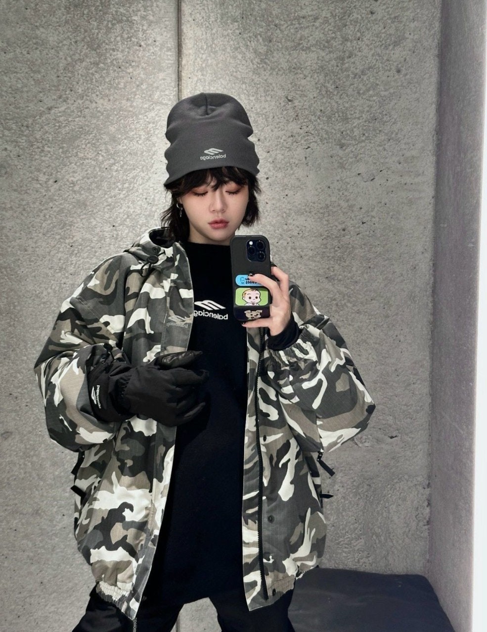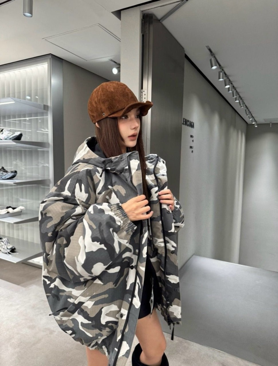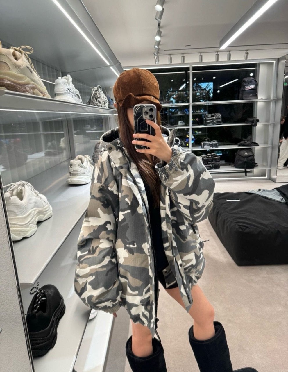 발**** M1174 카모 프린트 스키 자켓