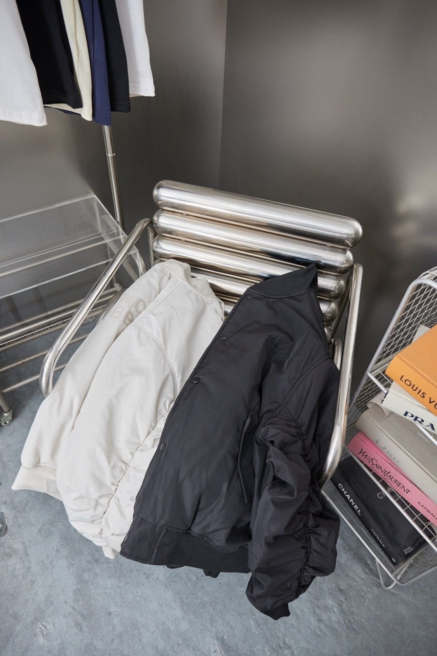 발**** M1153 자수 로고 셔링 봄버 자켓