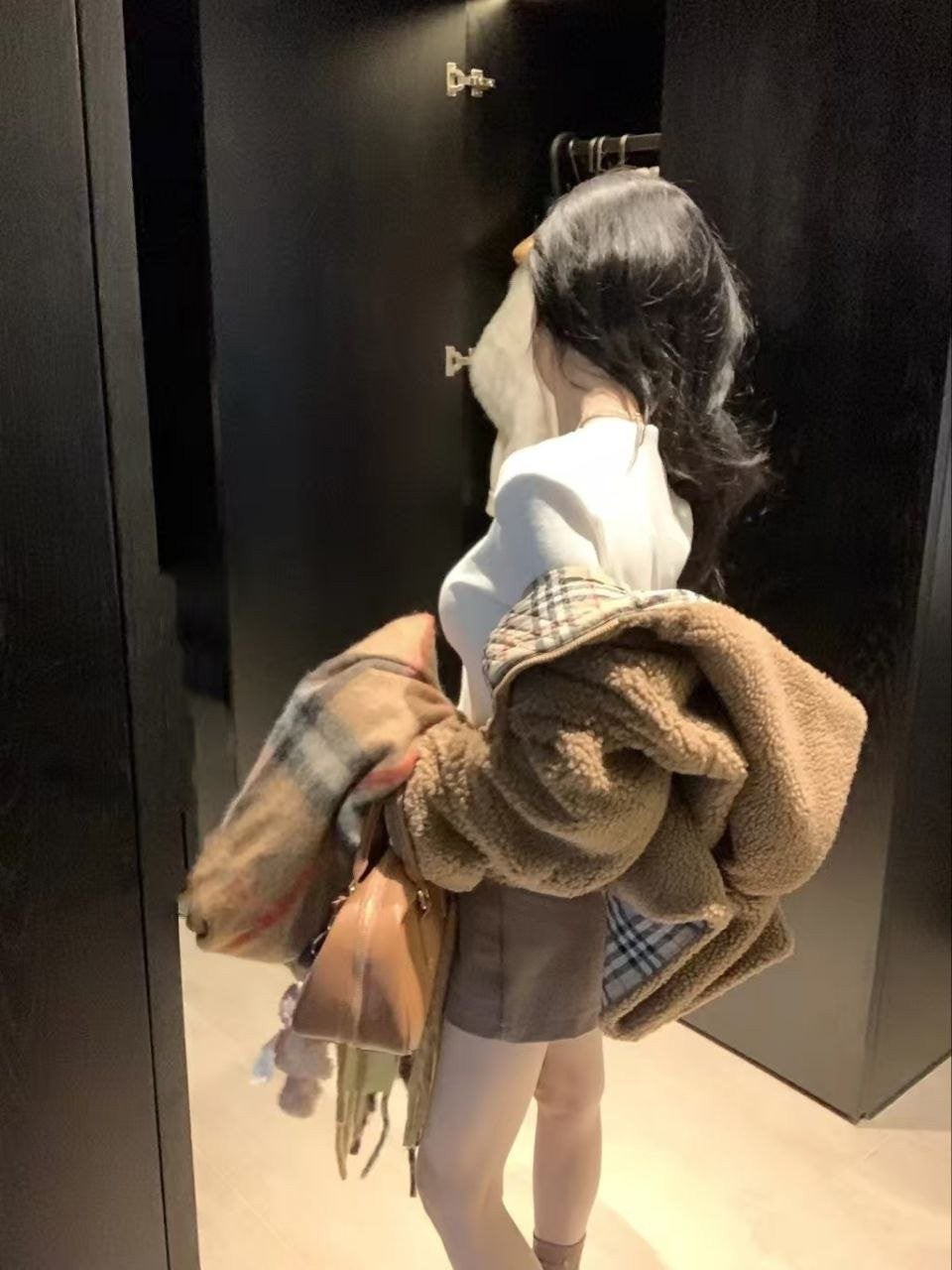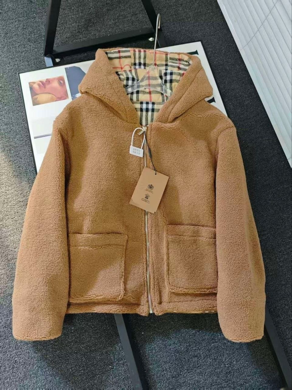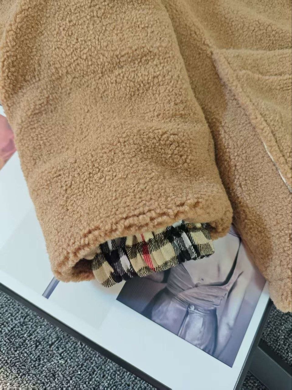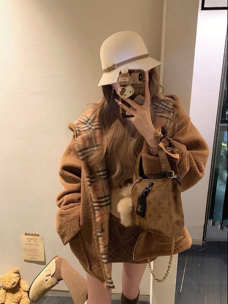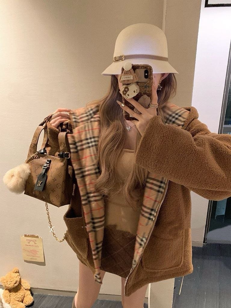 버**(Burber*)의 겨울용 도톰한 무스탕 스타일 테디 플리스 재킷으로, 이번 가을·겨울 시즌에 큰 인기를 끈 플리스(양털) 아우터입니다. 안감에는 클래식 체크 패턴을 적용했고, 겉감은 브라운 톤의 부드러운 플리스 소재로 보온성이 좋아 쌀쌀한 계절에 입기 아주 적합합니다. 소매와 몸판에 들어간 체크 배색 디테일이 브리티시 무드를 한층 살려주며, 전반적으로 빈티지한 멋이 느껴집니다. 품은 여유 있는 넉넉한 실루엣으로 머플러나 모자를 매치하면 우아하면서도 캐주얼한 룩을 쉽게 완성할 수 있어 출근 룩이나 데일리 외출용으로 모두 활용하기 좋습니다.