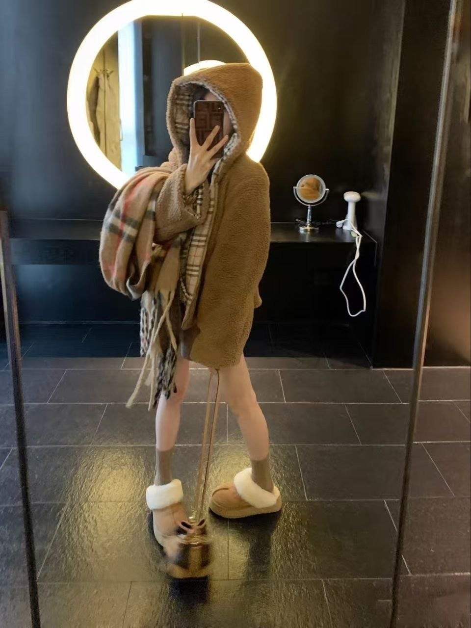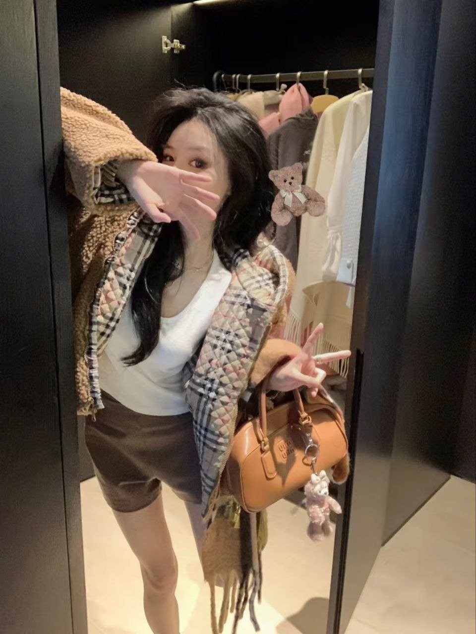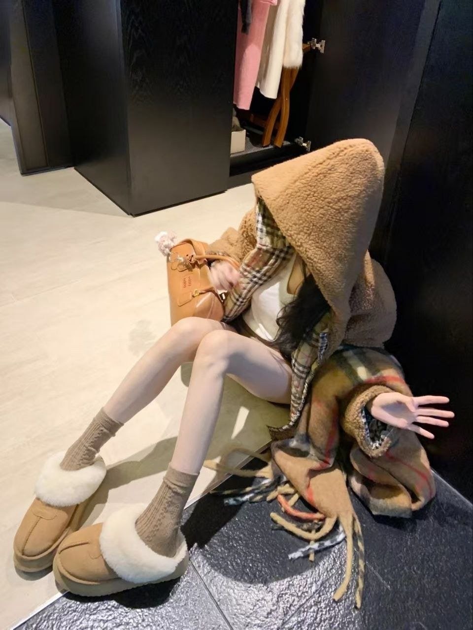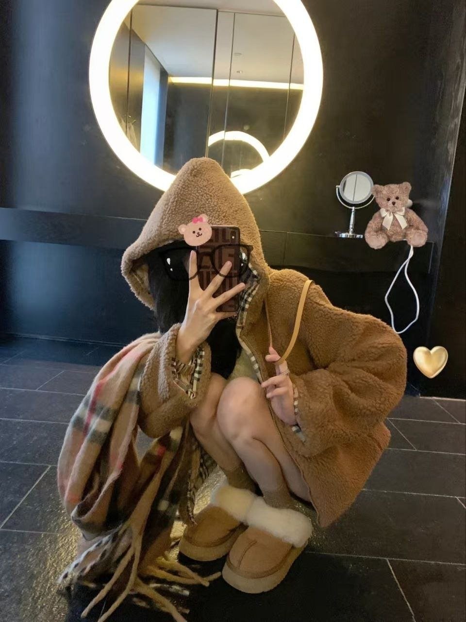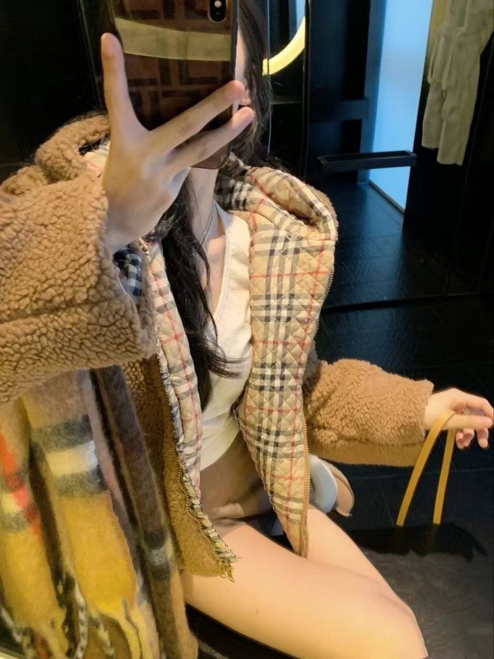 버**(Burber*)의 겨울용 도톰한 무스탕 스타일 테디 플리스 재킷으로, 이번 가을·겨울 시즌에 큰 인기를 끈 플리스(양털) 아우터입니다. 안감에는 클래식 체크 패턴을 적용했고, 겉감은 브라운 톤의 부드러운 플리스 소재로 보온성이 좋아 쌀쌀한 계절에 입기 아주 적합합니다. 소매와 몸판에 들어간 체크 배색 디테일이 브리티시 무드를 한층 살려주며, 전반적으로 빈티지한 멋이 느껴집니다. 품은 여유 있는 넉넉한 실루엣으로 머플러나 모자를 매치하면 우아하면서도 캐주얼한 룩을 쉽게 완성할 수 있어 출근 룩이나 데일리 외출용으로 모두 활용하기 좋습니다.