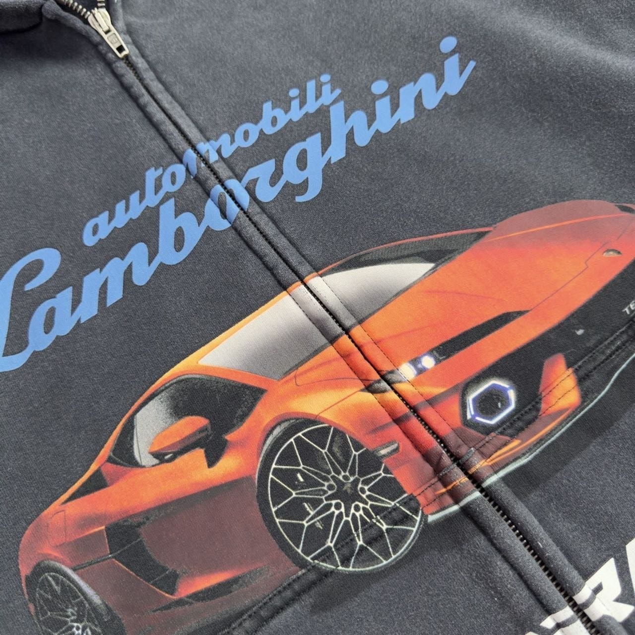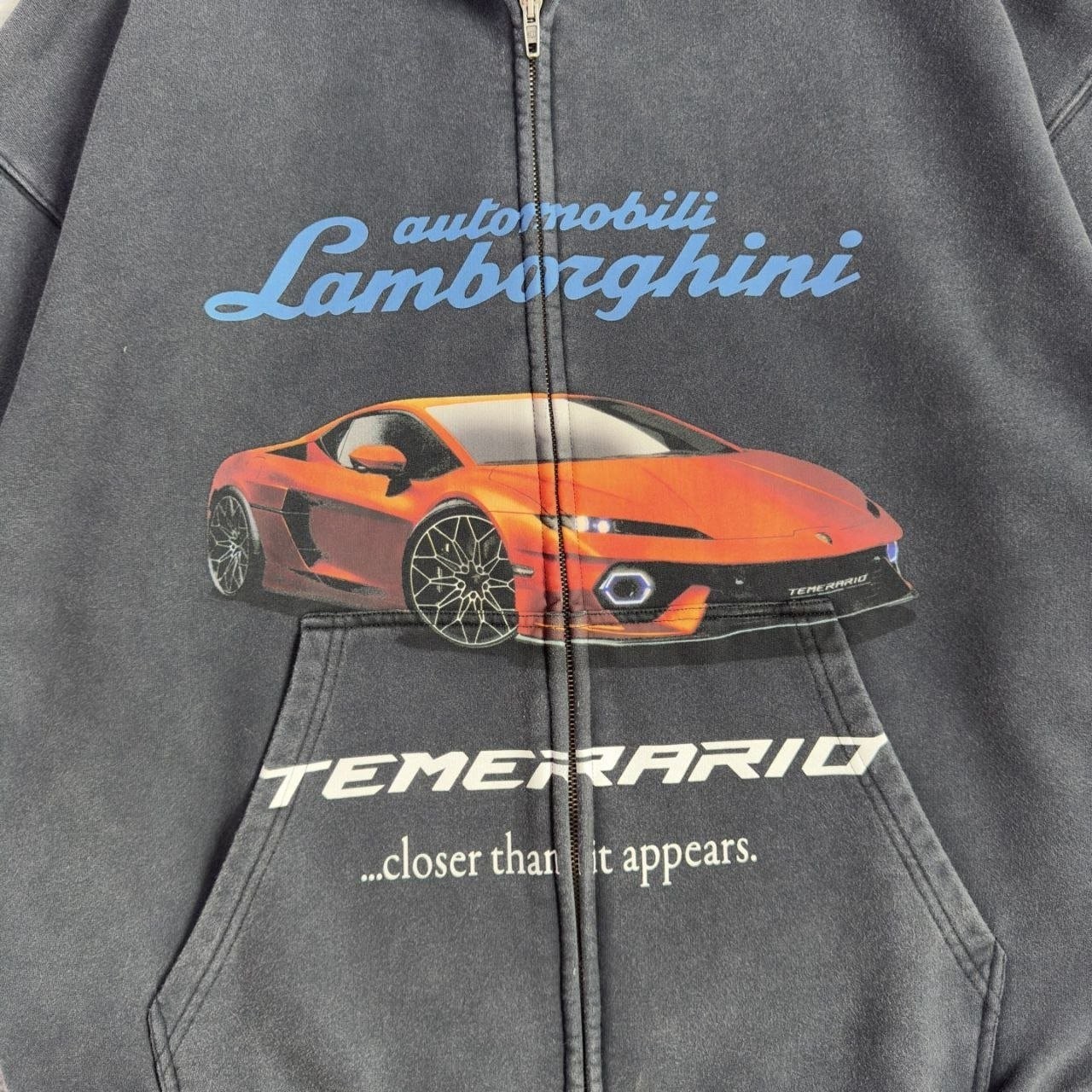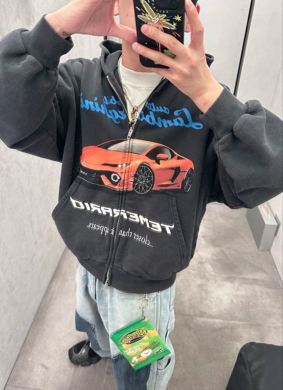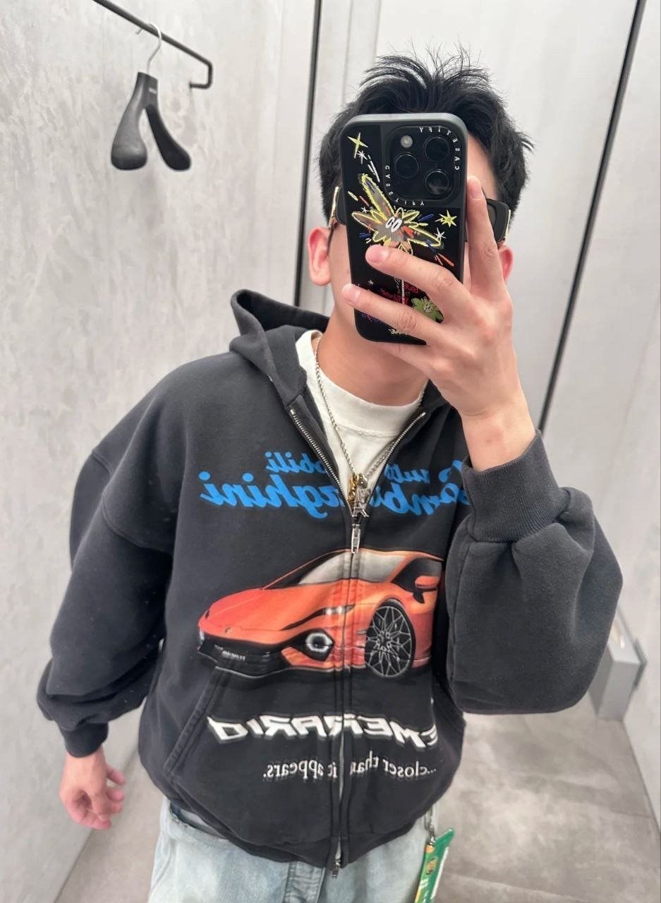 •원단은 32수 두께감 있는 루프백(테리) 스웻 소재를 사용했으며, 중량은 460g입니다. 시보리는 1×1 정교면(콤드 코튼) 이중사 립으로 420g을 적용했습니다. 프린트는 타원형 기계 직분사 방식으로 진행했고, 적외선으로 좌우 위치를 정밀하게 맞춰 오차가 없습니다. 총 7개 패널을 기준으로 포지셔닝했으며, 좌우 몸판과 포켓은 10여 년 경력의 장인이 순수 수작업으로 맞춰 봉제하여, 오차가 0.03 이내입니다. 양방향 사용이 가능한 맞춤 제작 지퍼(빈티지한 톤의 컬러)를 사용했습니다. 완성 후 워싱과 빈티지 가공을 거쳐, 기모가 살짝 일어날 때까지 세탁 처리해 매우 부드럽고 편안한 촉감을 구현했습니다. 특정 세 가지 태그(세탁 라벨 포함)가 있습니다.
