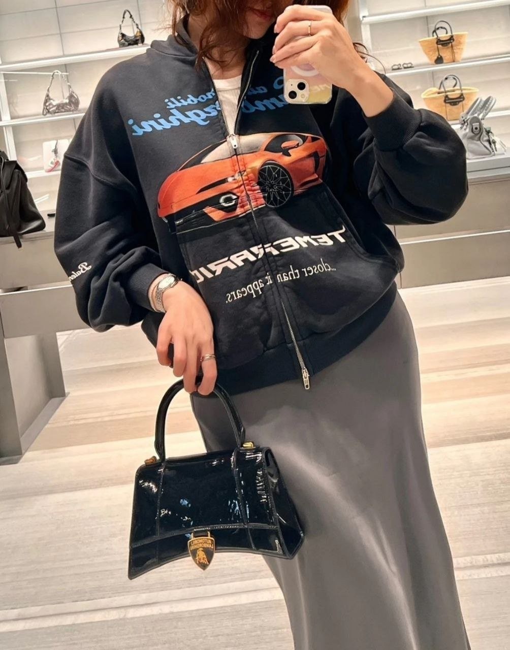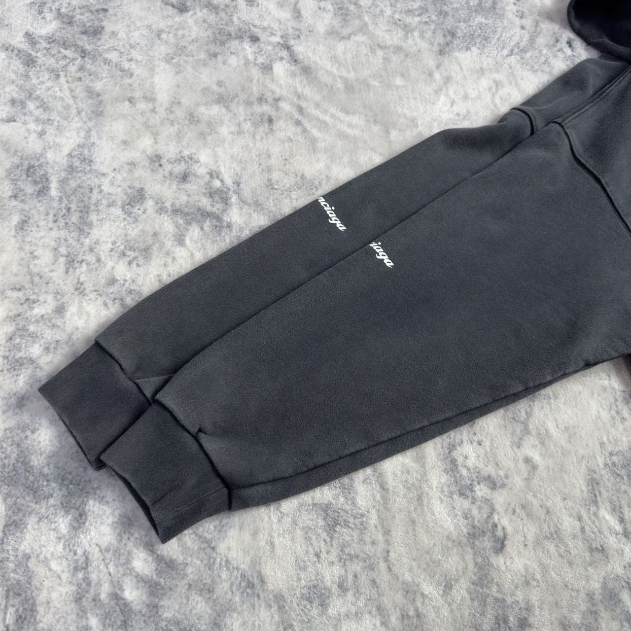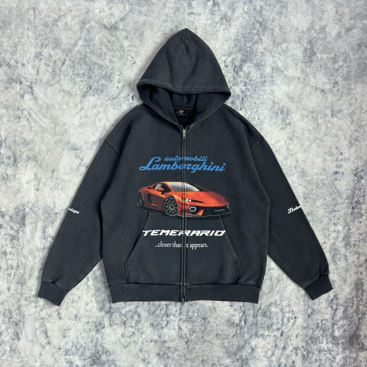 •원단은 32수 두께감 있는 루프백(테리) 스웻 소재를 사용했으며, 중량은 460g입니다. 시보리는 1×1 정교면(콤드 코튼) 이중사 립으로 420g을 적용했습니다. 프린트는 타원형 기계 직분사 방식으로 진행했고, 적외선으로 좌우 위치를 정밀하게 맞춰 오차가 없습니다. 총 7개 패널을 기준으로 포지셔닝했으며, 좌우 몸판과 포켓은 10여 년 경력의 장인이 순수 수작업으로 맞춰 봉제하여, 오차가 0.03 이내입니다. 양방향 사용이 가능한 맞춤 제작 지퍼(빈티지한 톤의 컬러)를 사용했습니다. 완성 후 워싱과 빈티지 가공을 거쳐, 기모가 살짝 일어날 때까지 세탁 처리해 매우 부드럽고 편안한 촉감을 구현했습니다. 특정 세 가지 태그(세탁 라벨 포함)가 있습니다.