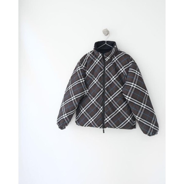 •「인기 제품 지속 판매 중인 스타일 Burber** (버**) Reversible Check Nylon Puffer Jacket 군녹색 체크 양면으로 착용 가능한 스탠드 카라 다운 재킷, 후드는 수납 가능 남녀 공용」