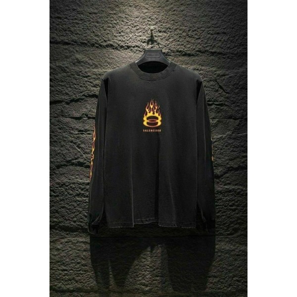 발**** 불꽃 긴팔 워싱 티셔츠