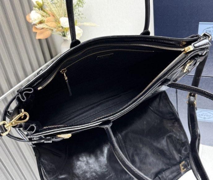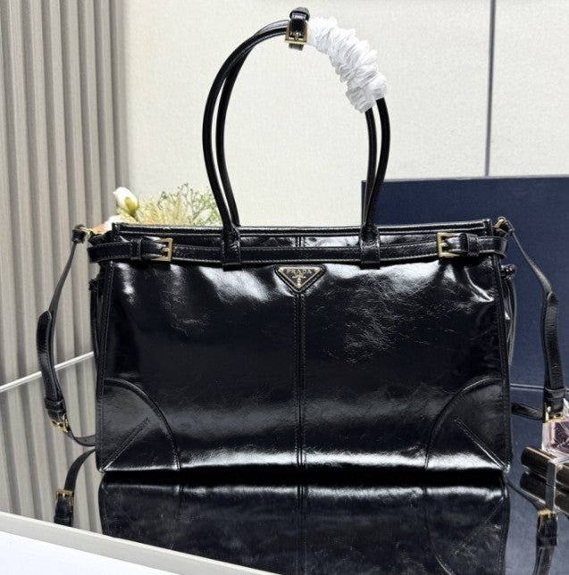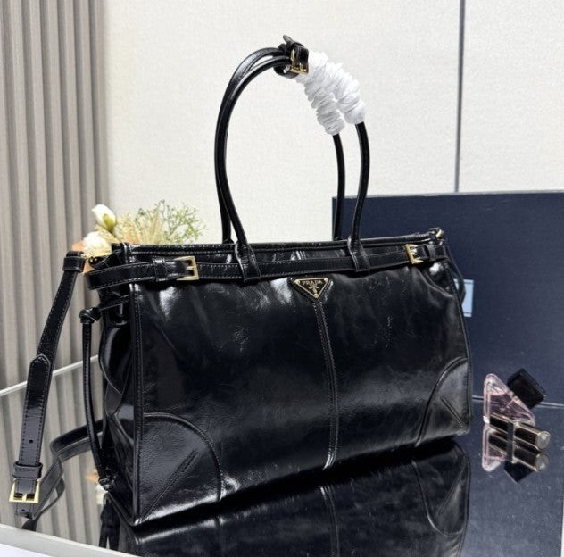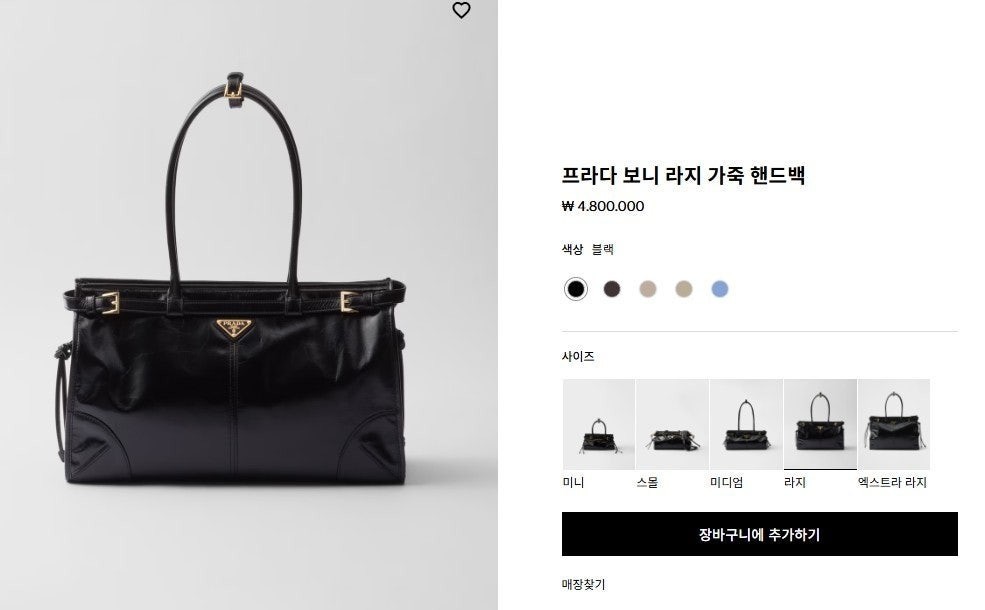 • 프** 보니 라지 가죽 핸드백 블랙