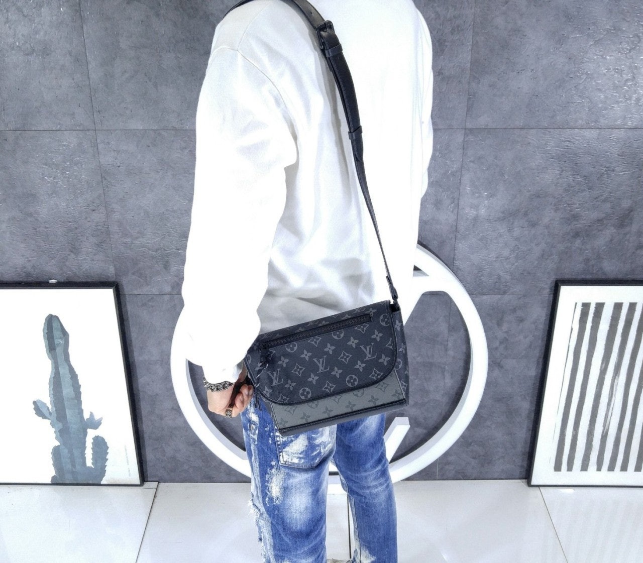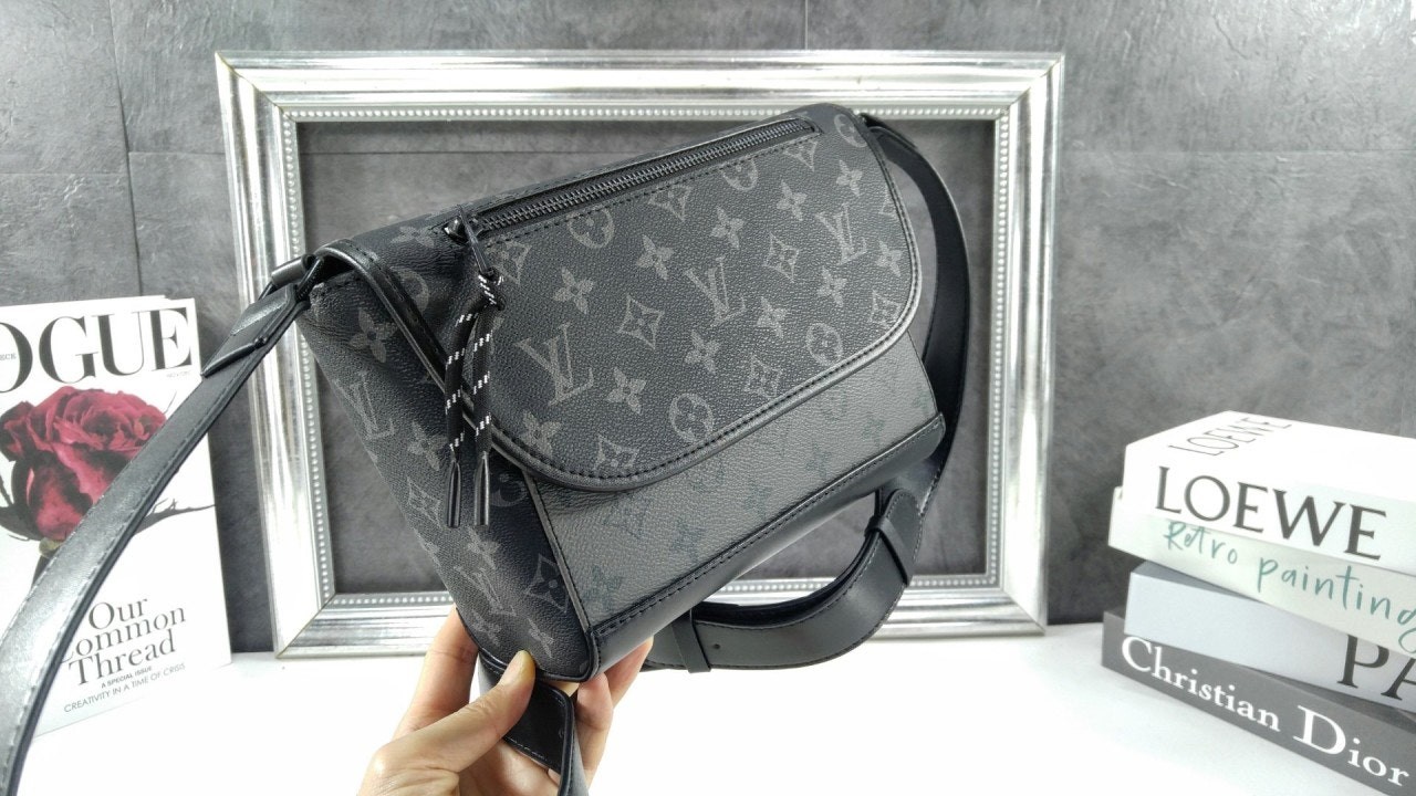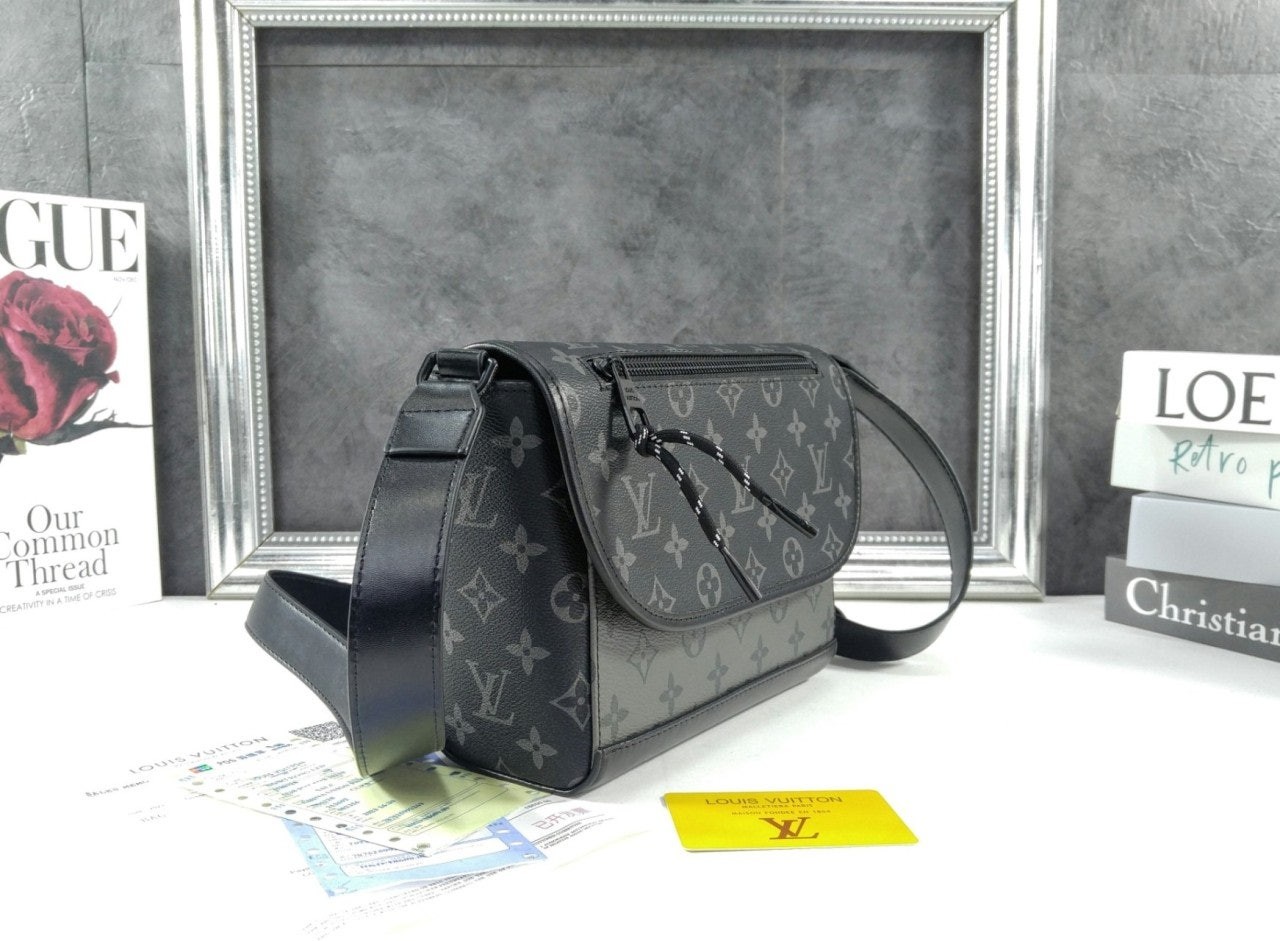 메신저 백의 작은 버전으로 선보이는 펄스 메신저. 모노그램 이클립스 캔버스 소재. 끈 지퍼 풀러가 달린 플랩 부분의 지퍼형 외부 포켓. 옆면 루프 덕분에 가죽 소재 스트랩을 쉽게 조절하여 숄더 백 또는 크로스 바디 백으로 연출할 수 있는 아이템. 내부 소지품을 쉽게 꺼낼 수 있는 편리한 자석형 플랩 잠금장치.