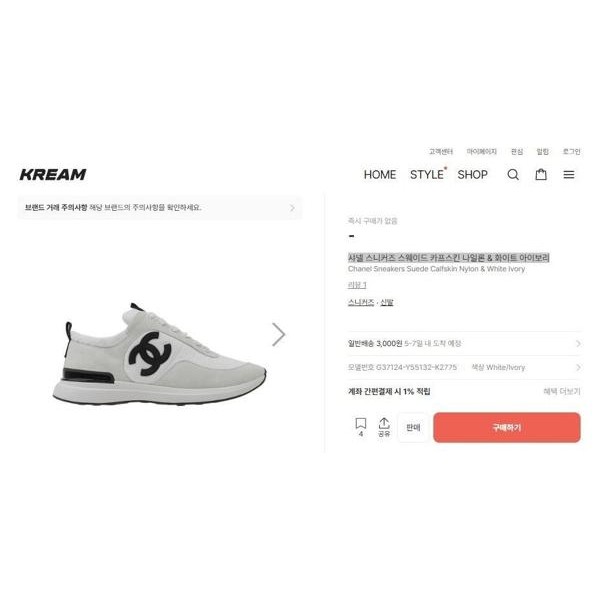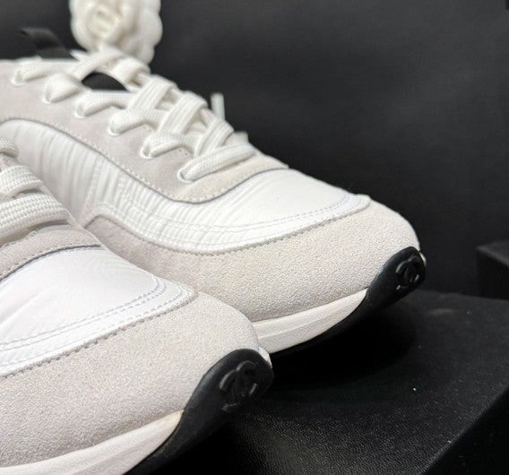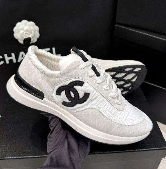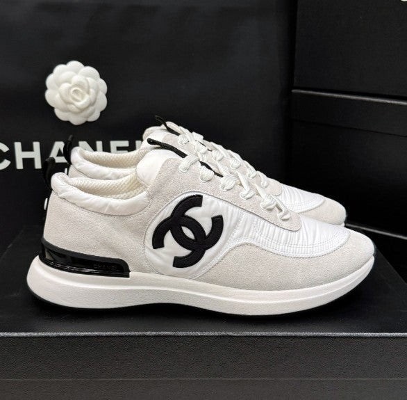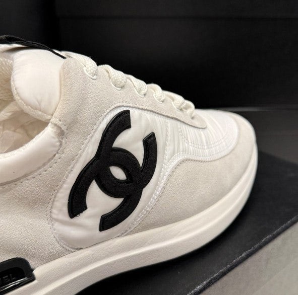 샤* cc스니커즈 스웨이드 카프스킨 나일론 화이트 아이보리