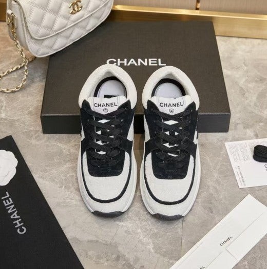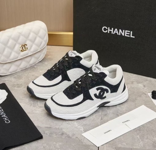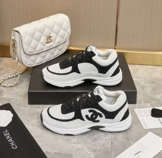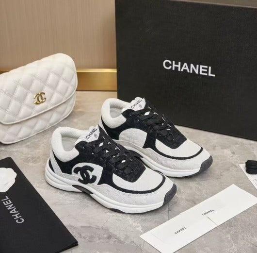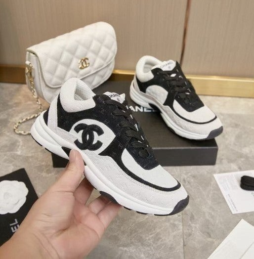 샤* cc 스니커즈 프린티드 카프스킨 화이트 블랙