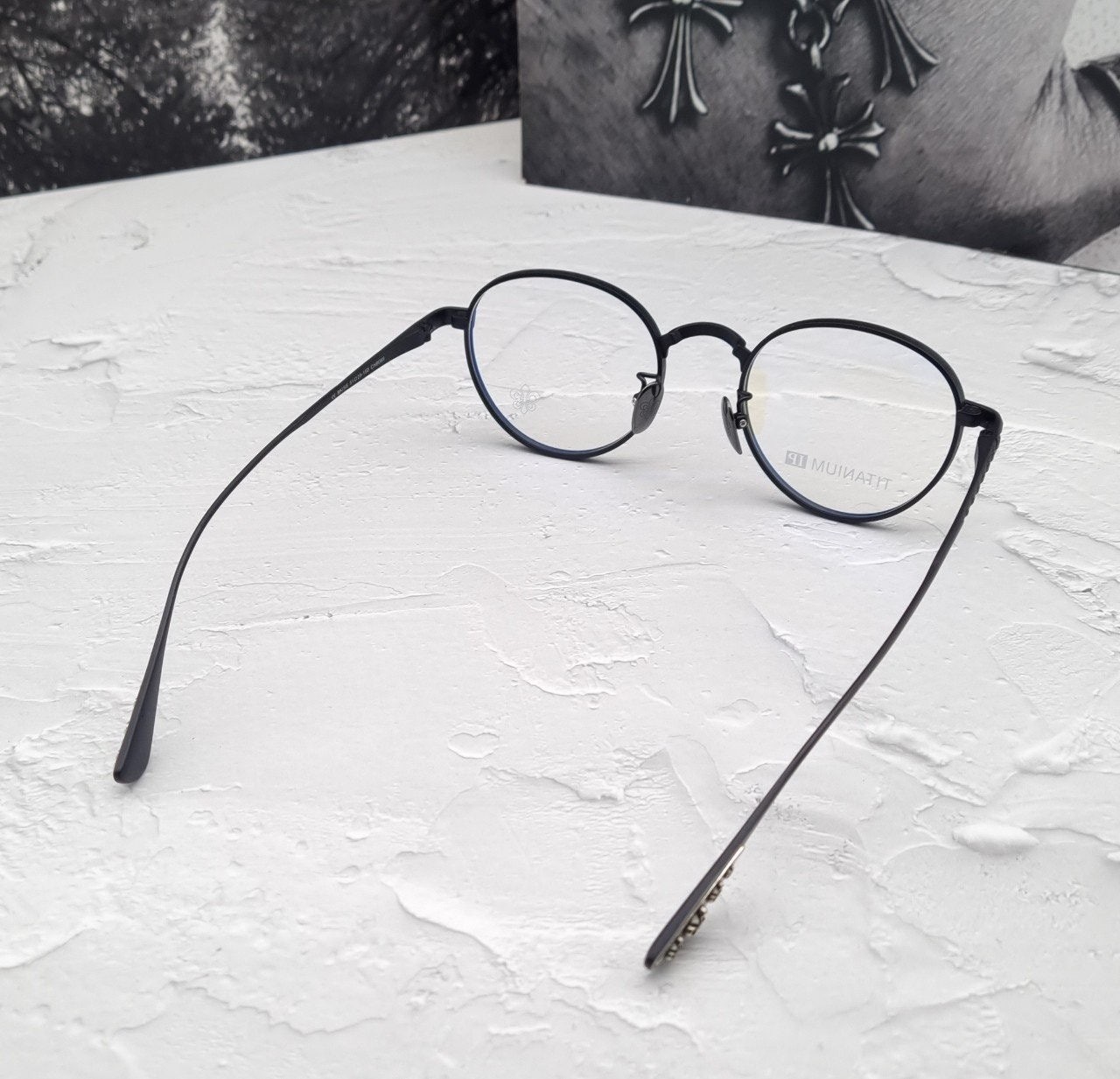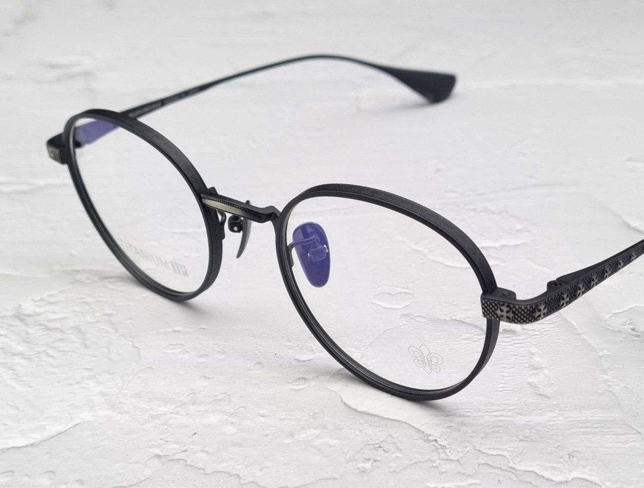 보스톤의 라운드 모양 안경으로 호불호없이 남녀노소 누구나 잘어울리는 디자인으로 균형이 좋고 착용한듯