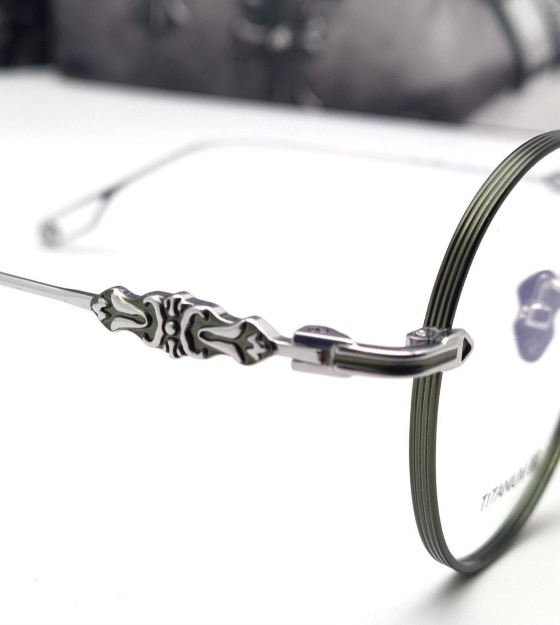 테두리 은은한 에메랄드 그린색상과 옆라인 시그니처인 중세문양 및 템플팁의 디테일로 착용시 지적이면서 섹시해보여요^^