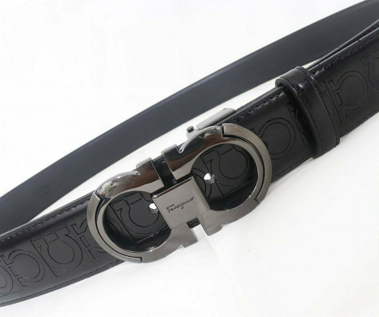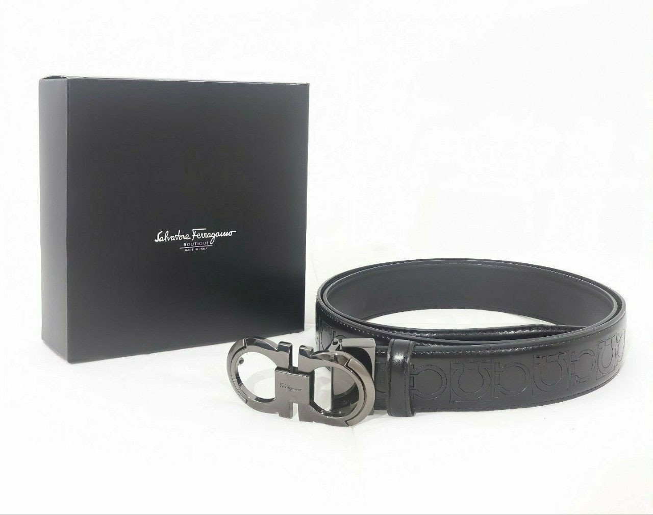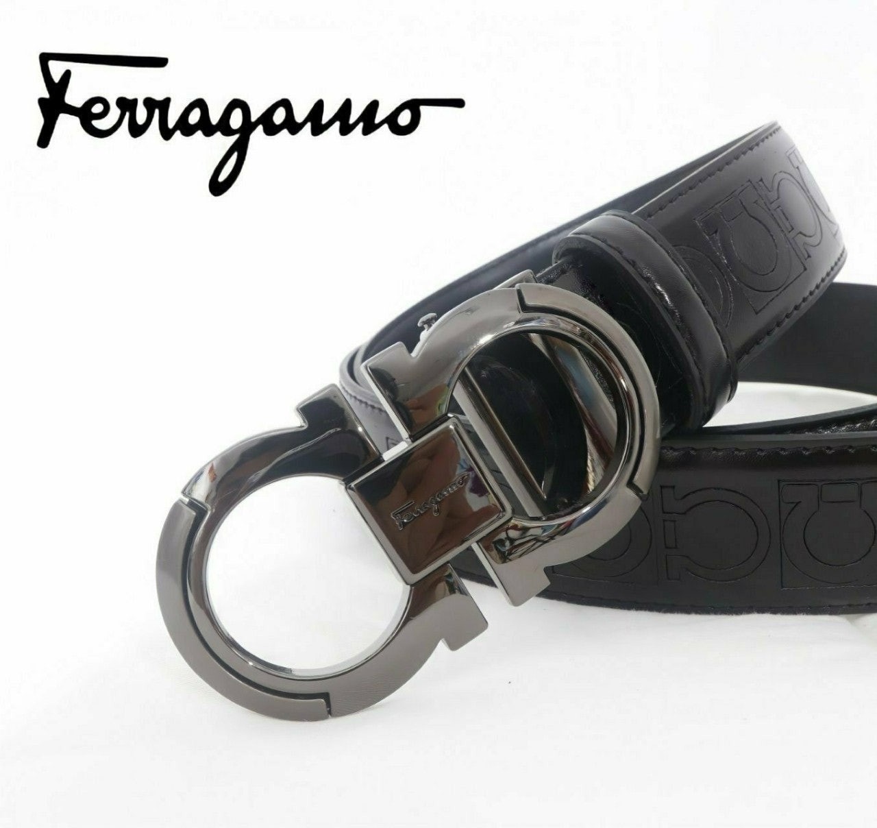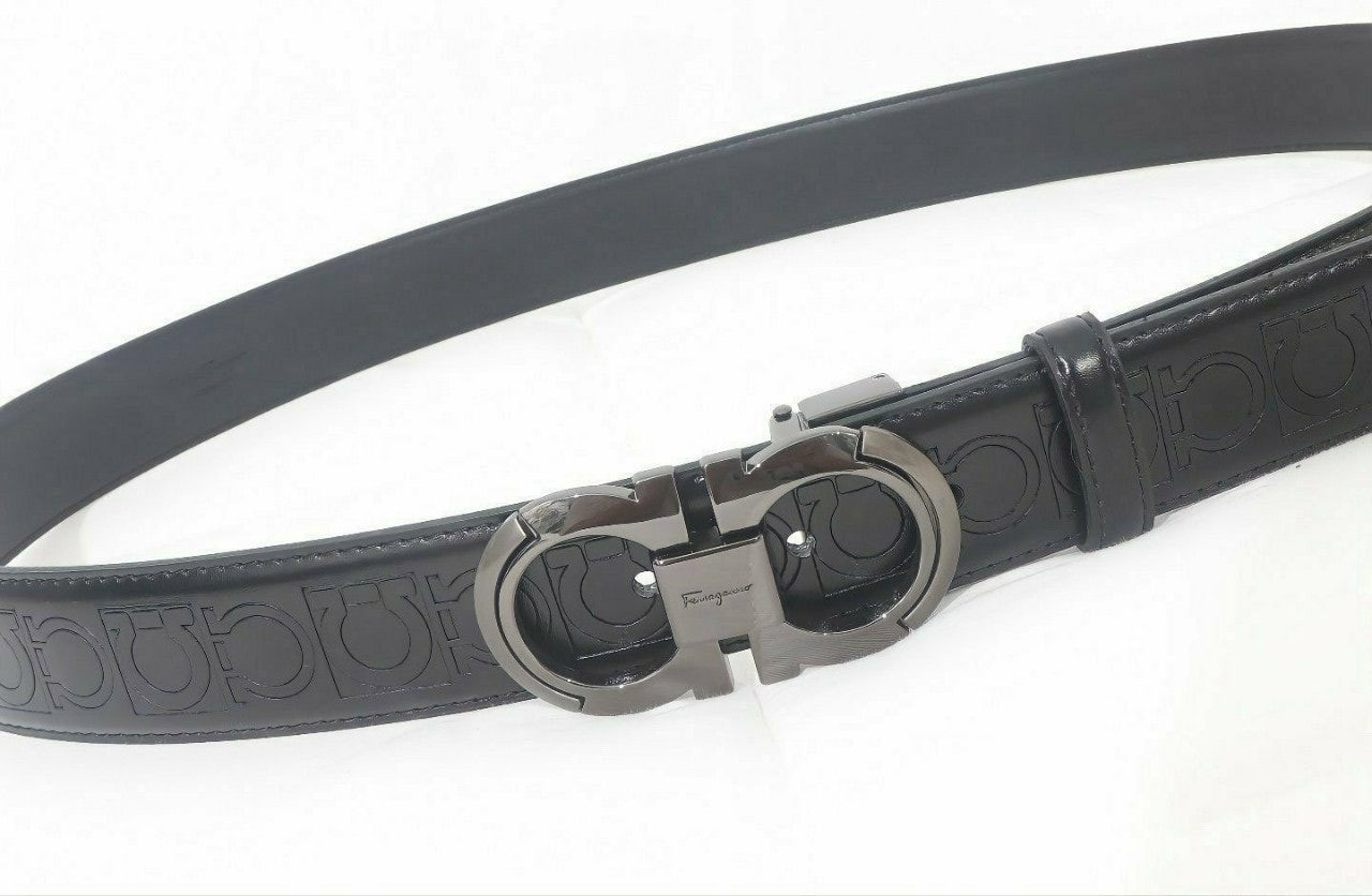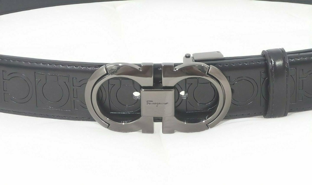 ☑️페*** 로고가 블랙 버클 중간에 페*** 로고가 포인트로 들어가 있으며 브랙 스트랩으로 무난하게 착용할 수 있는 페라가모 벨트입니다☆☆☆