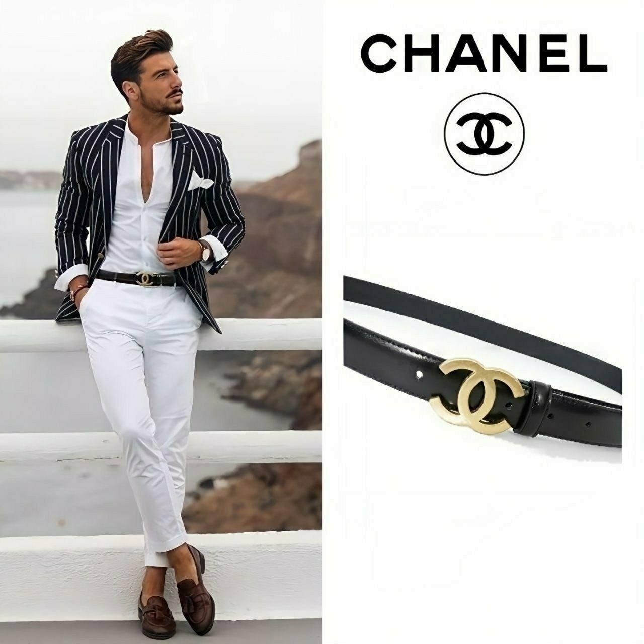 ☑️블랙 스트랩에 금장 C로고 장식으로 포인트 된제품으로 스트랩이 단단한 소가죽 제작되어 오래 사용이 가능한 벨트입니다 2.5센치 입니다 ☆☆