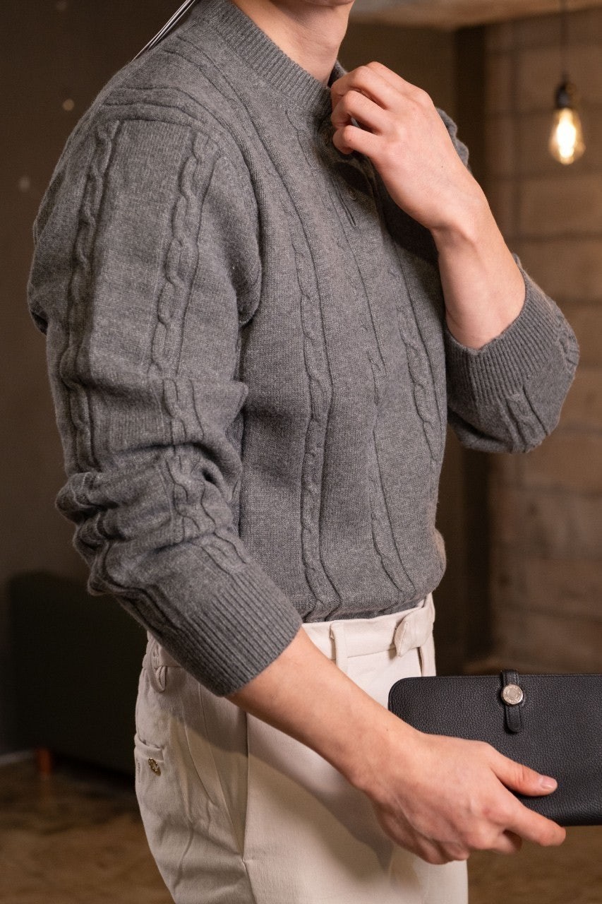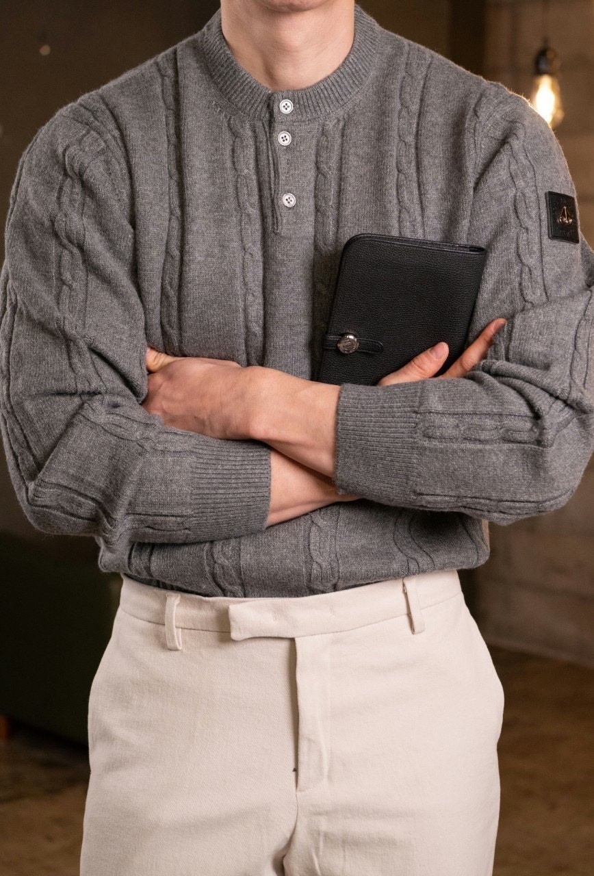 저희제품은 재생 캐시미어로 제작된 파리캡슐 컬렉션 니트웨어 제품이며 입었을시 촉감이 좋은 플레인 니트 질감이 특징이며 최고급 소재로 제작된 제품 입니다.