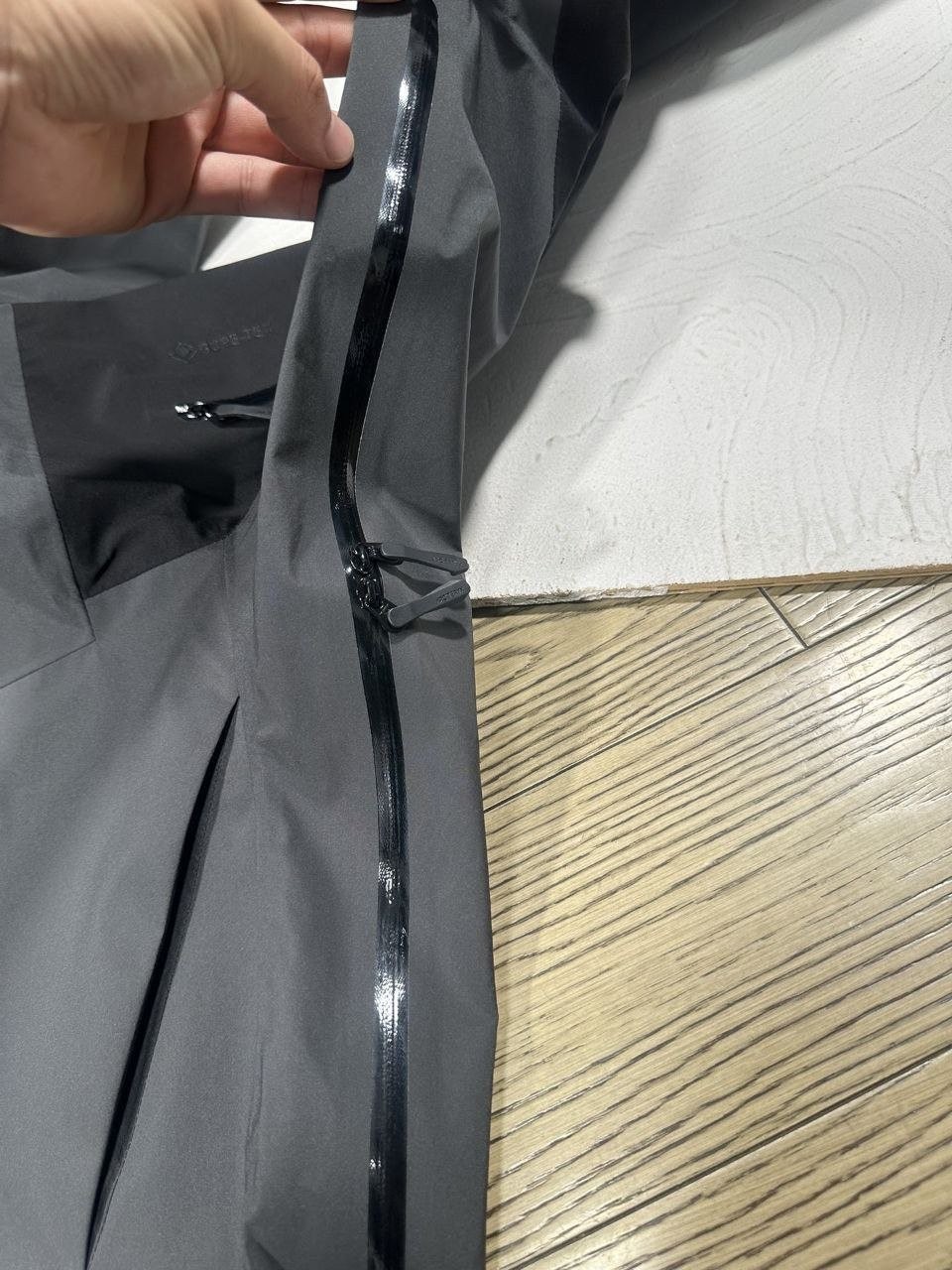 •Hadron™ 표면 소재는 바람과 비로부터 보호하며, 더 가볍고 통기성이 뛰어나고, 압착된 강한 GORE-TEX 3중 구조입니다. 표준 스타일로 통풍성, 편안함 및 유연성을 제공합니다. 신축성이 없는 겨드랑이 패널이 있습니다. 절단된 Velcro® 소매 마감은 불필요한 부분을 줄여주며, 걸리지 않도록 설계되었습니다.