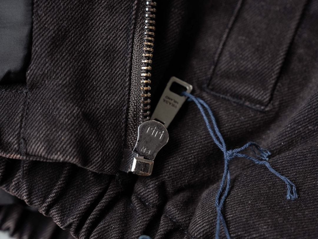 •원단은 수입된 블랙 코튼 무신축 원단을 사용하였으며, 고가의 맞춤 제작 RIRI 금속 지퍼와 KF 플레이트 로고가 특징입니다. 안감은 고밀도 견고한 직조 소재로 제작되었습니다!