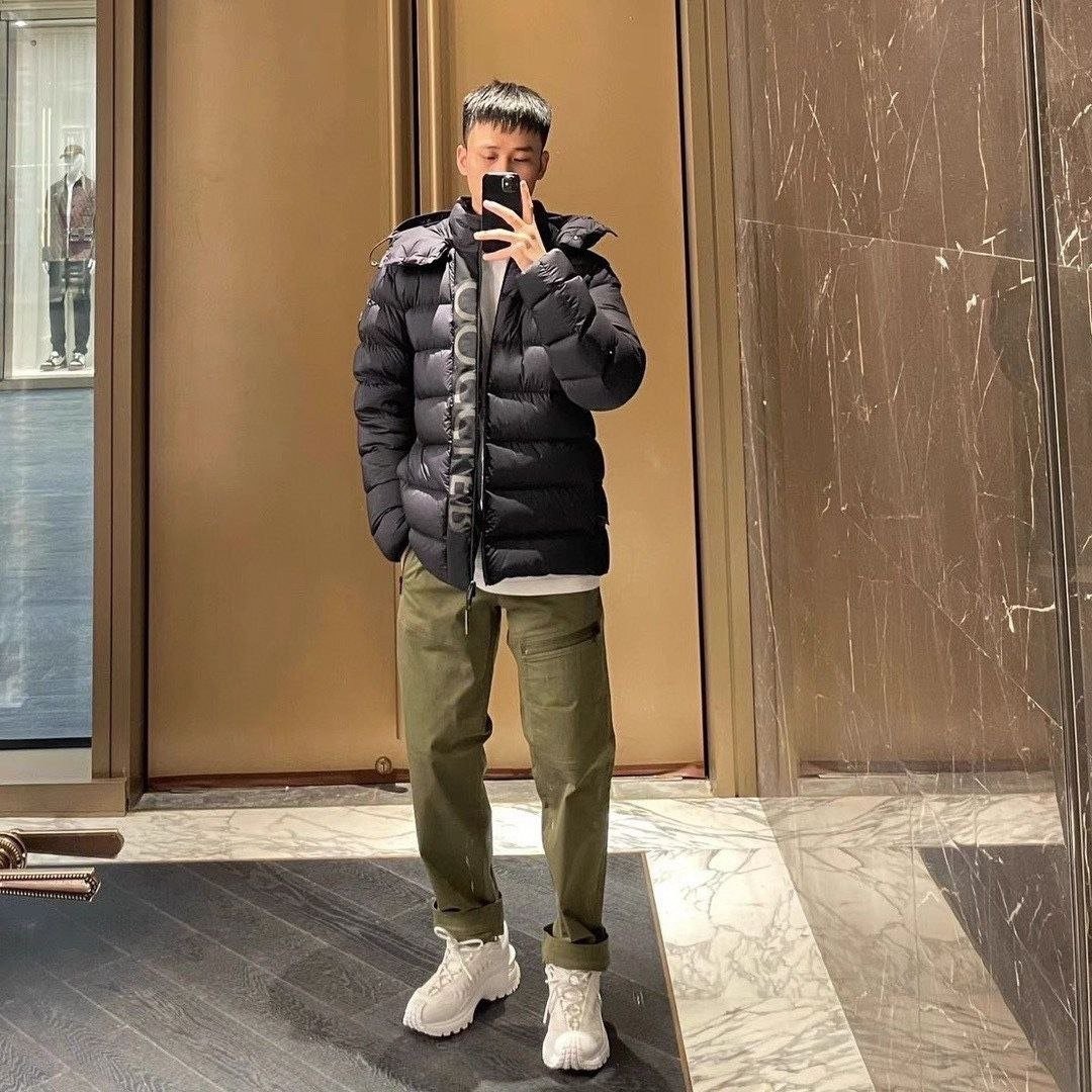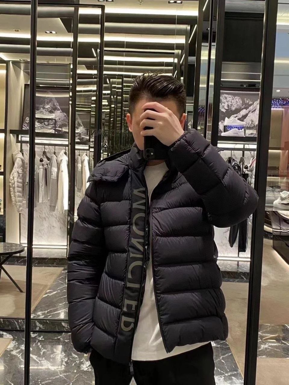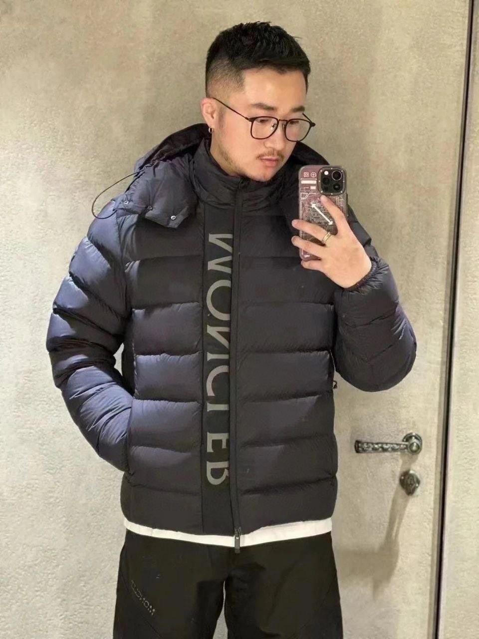 •Moncl**(몽클레*) FW 신형 '블랙 워리어' 3M 리플렉티브 디테일의 화이트 덕다운 후드 패딩입니다. 겉감은 무광의 Longue Saison 나일론을 사용하고 안감은 페이턴트 느낌의 나일론을 적용했으며, 충전재는 고함량의 구스(화이트 거위솜털)로 보온성과 복원력이 뛰어납니다. 후드와 앞중심 플래킷(여밈)은 3중 구조의 특수 원단을 사용해 제작했고, 플래킷에는 반사 글자 디테일이 더해져 야간 시인성이 우수합니다. 여밈은 숨김형 버튼과 지퍼로 처리되며, 후드와 밑단에는 조절 가능한 탄력 스트링이 있어 체형·기후에 맞게 핏을 조절할 수 있습니다.