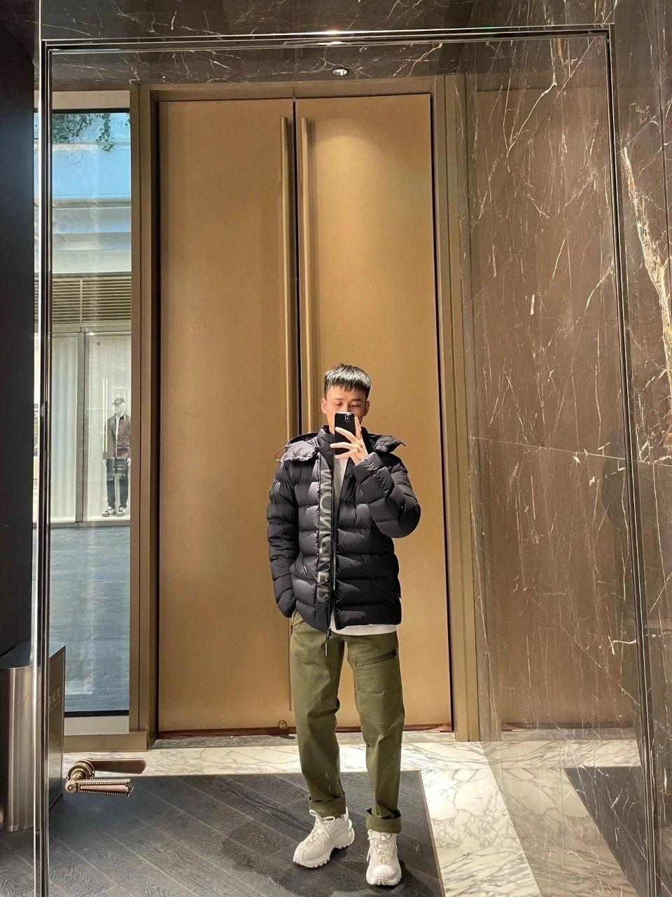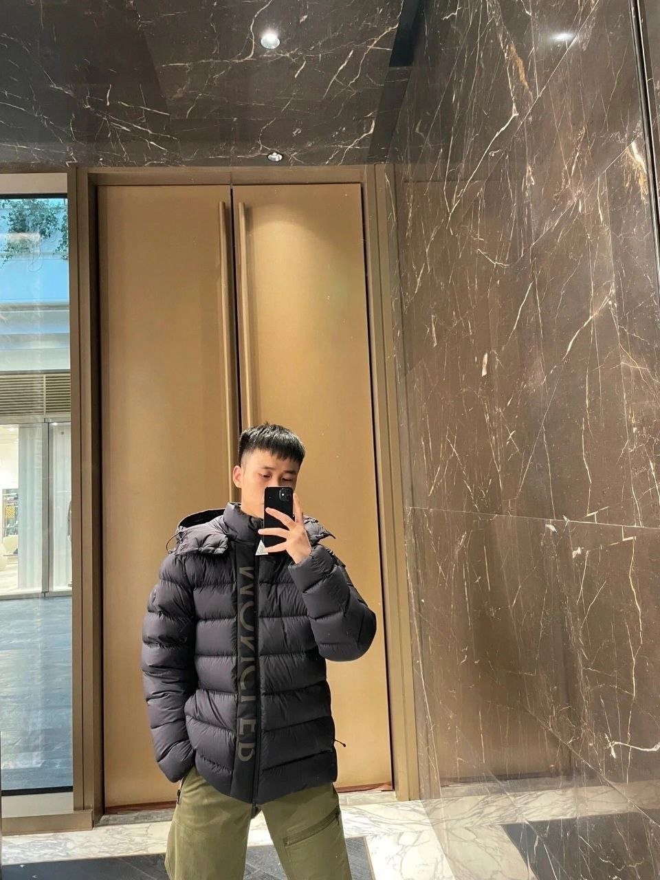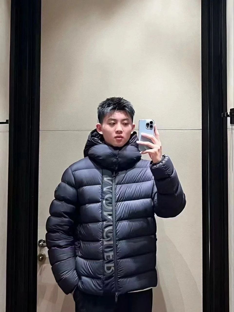 •Moncl**(몽클레*) FW 신형 '블랙 워리어' 3M 리플렉티브 디테일의 화이트 덕다운 후드 패딩입니다. 겉감은 무광의 Longue Saison 나일론을 사용하고 안감은 페이턴트 느낌의 나일론을 적용했으며, 충전재는 고함량의 구스(화이트 거위솜털)로 보온성과 복원력이 뛰어납니다. 후드와 앞중심 플래킷(여밈)은 3중 구조의 특수 원단을 사용해 제작했고, 플래킷에는 반사 글자 디테일이 더해져 야간 시인성이 우수합니다. 여밈은 숨김형 버튼과 지퍼로 처리되며, 후드와 밑단에는 조절 가능한 탄력 스트링이 있어 체형·기후에 맞게 핏을 조절할 수 있습니다.