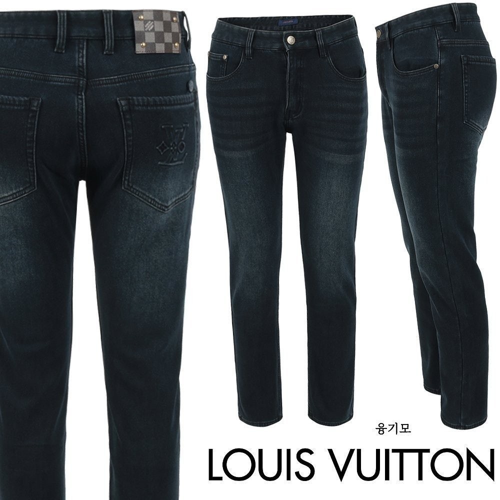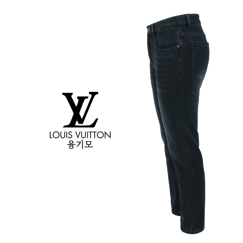루* 다미 레더 패치 진청 슬림 일자진 융 기모 원단