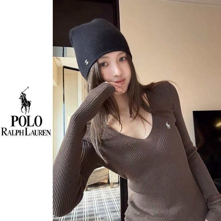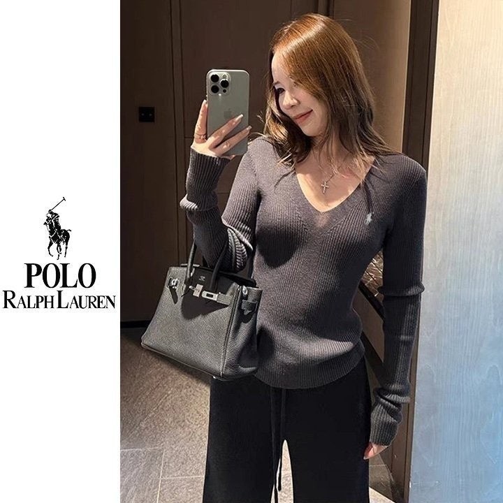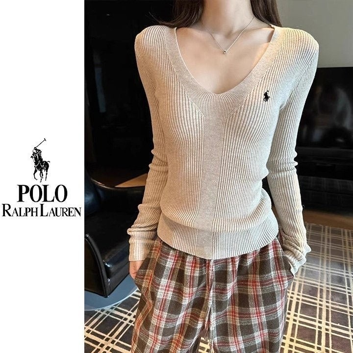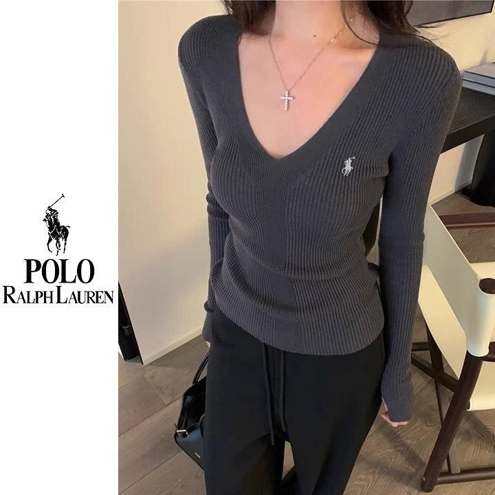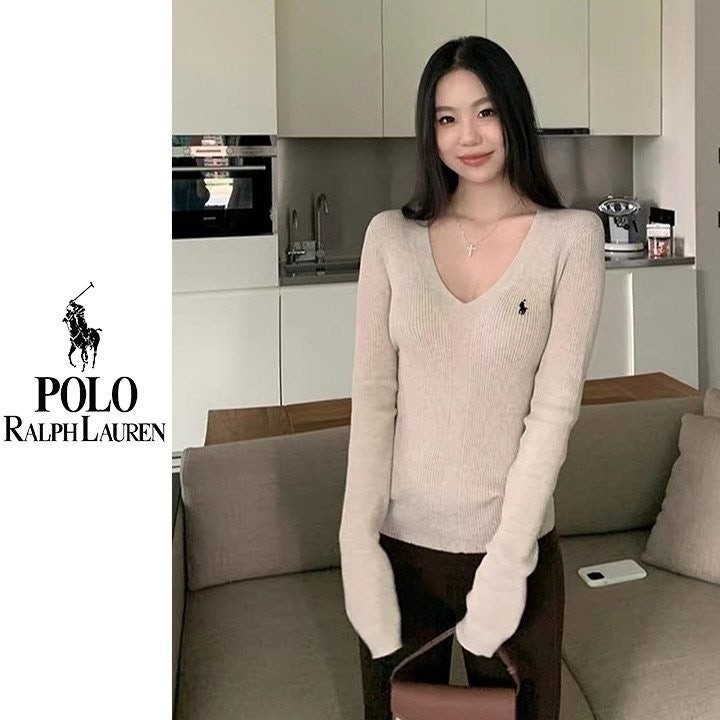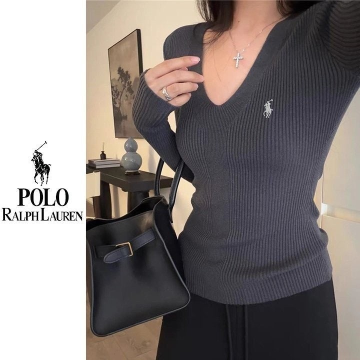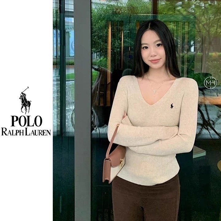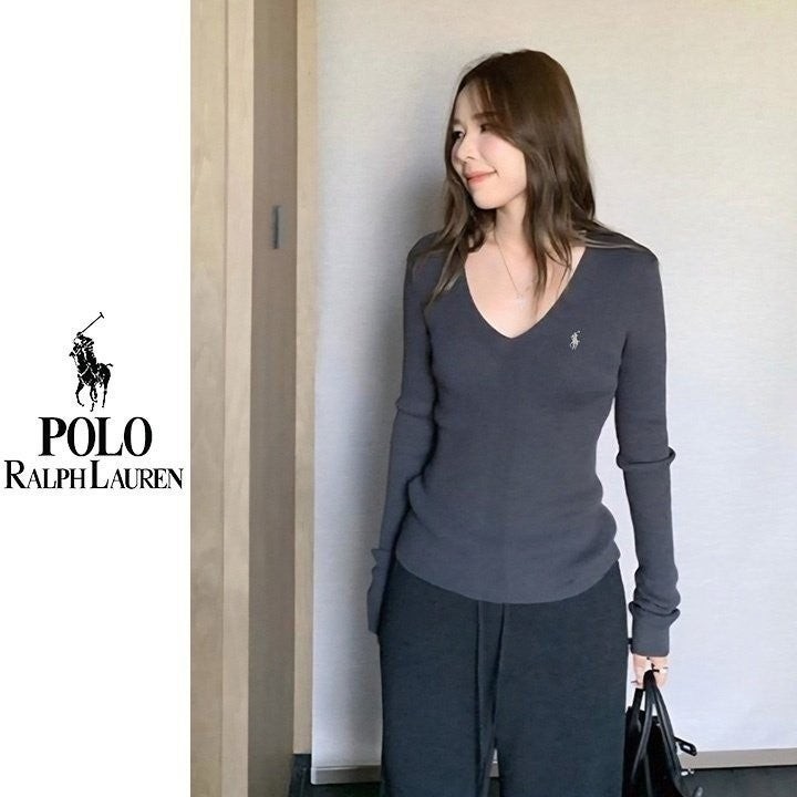 폴* 브이넥 자수 골지니트