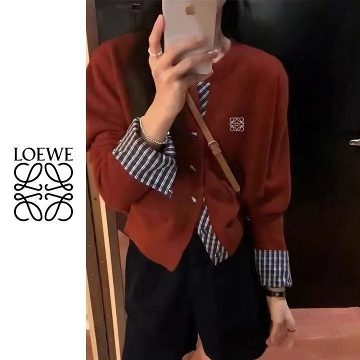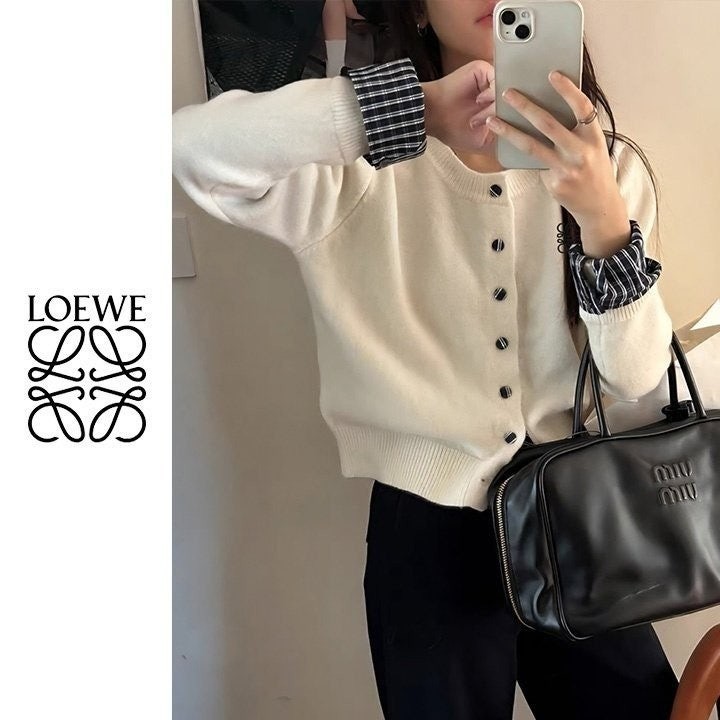 로** 자수 체크 레이어드가디건