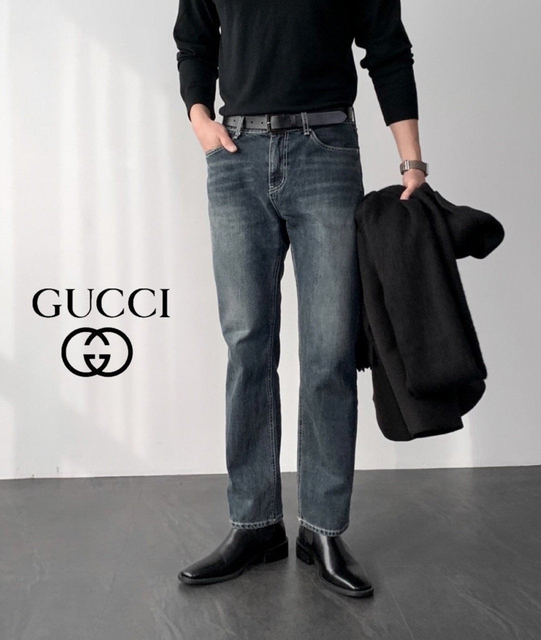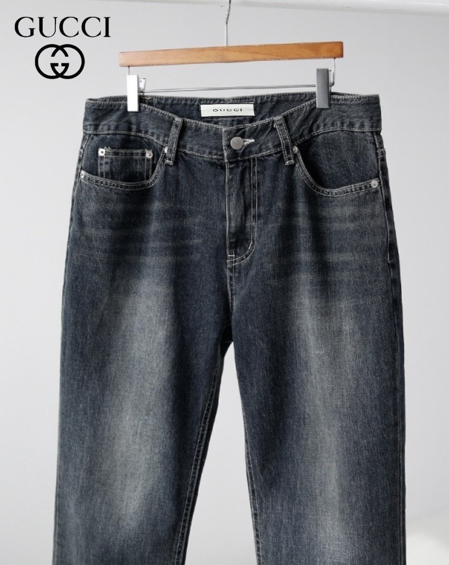 코튼 100% 난스판 원단으로 제작하였으며 일반 청 컬러 원단보다 고가인 WDB 원단을 사용하여 다크블루 컬러감으로 레트로한 무드나 깔끔한 무드의 코디에도 잘 어울리는 구X 테이퍼드 진 이빈다.