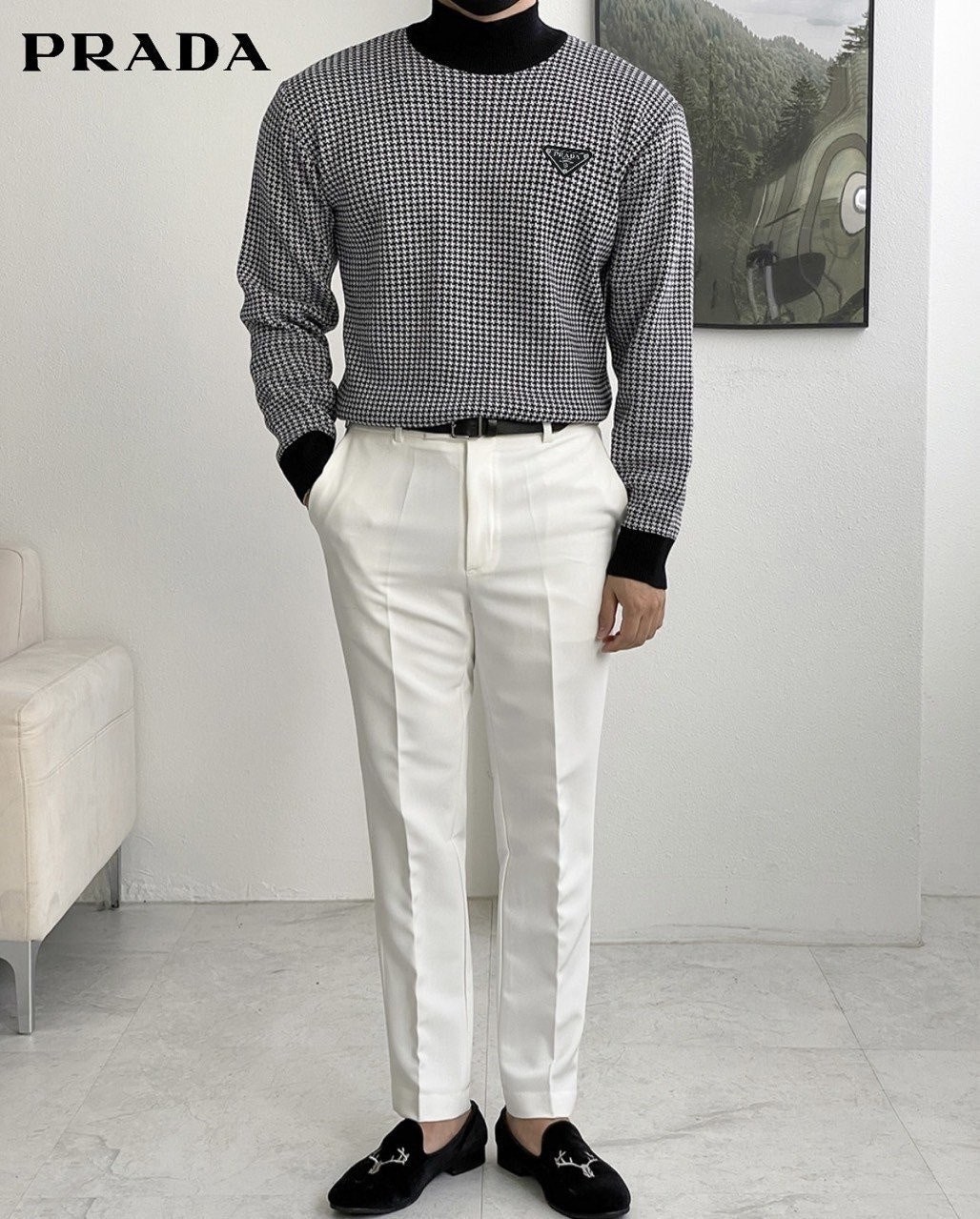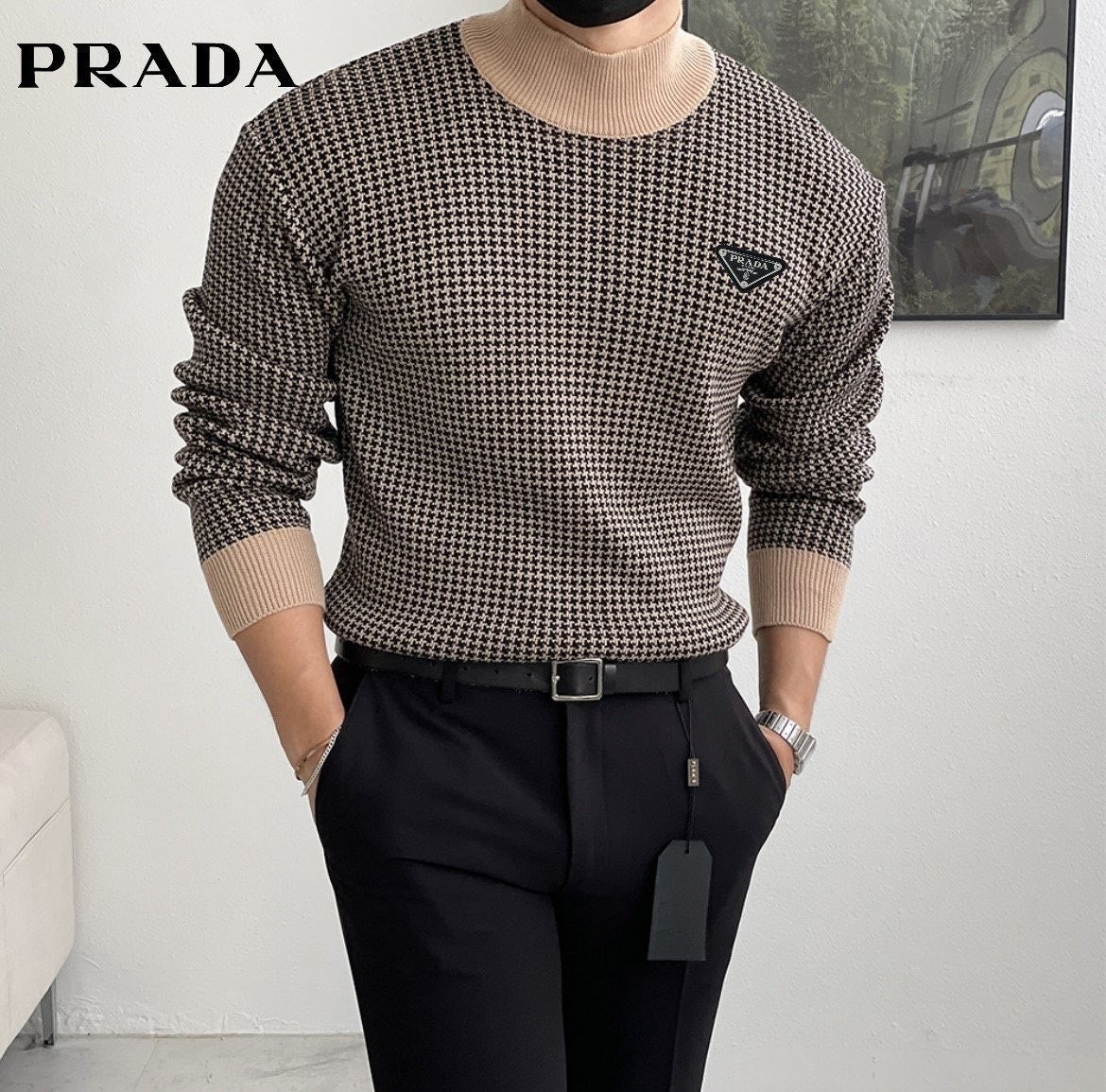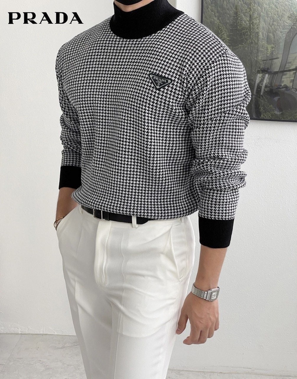 고급스러운 하운드 패턴이 가미된 무드있는 반목니트