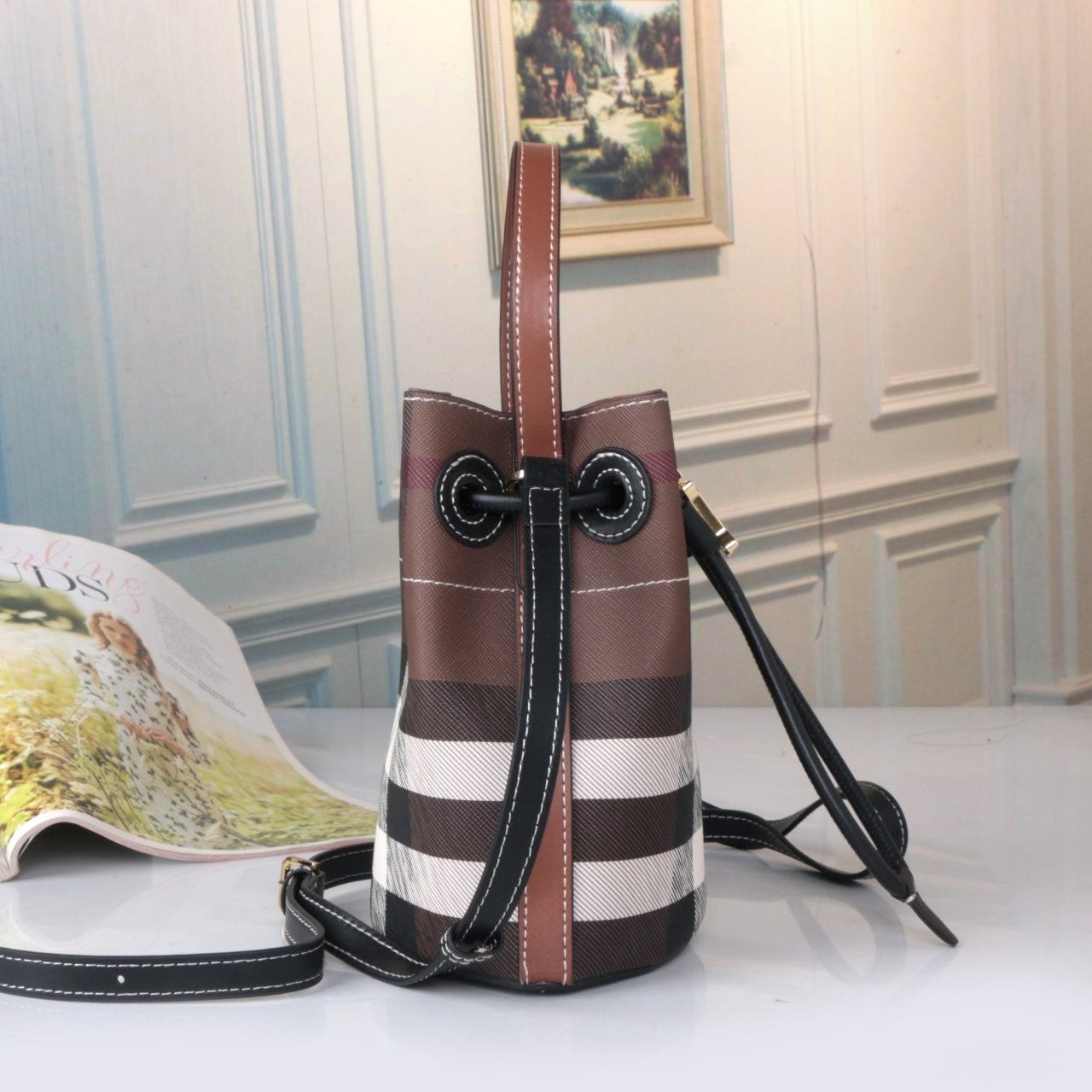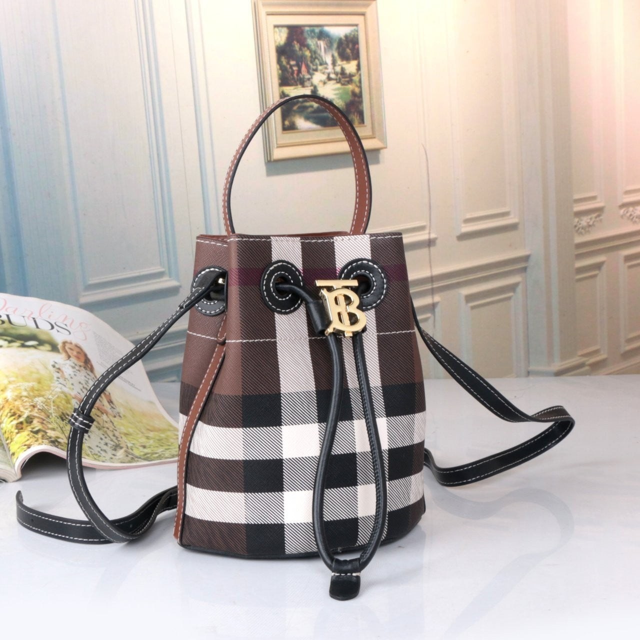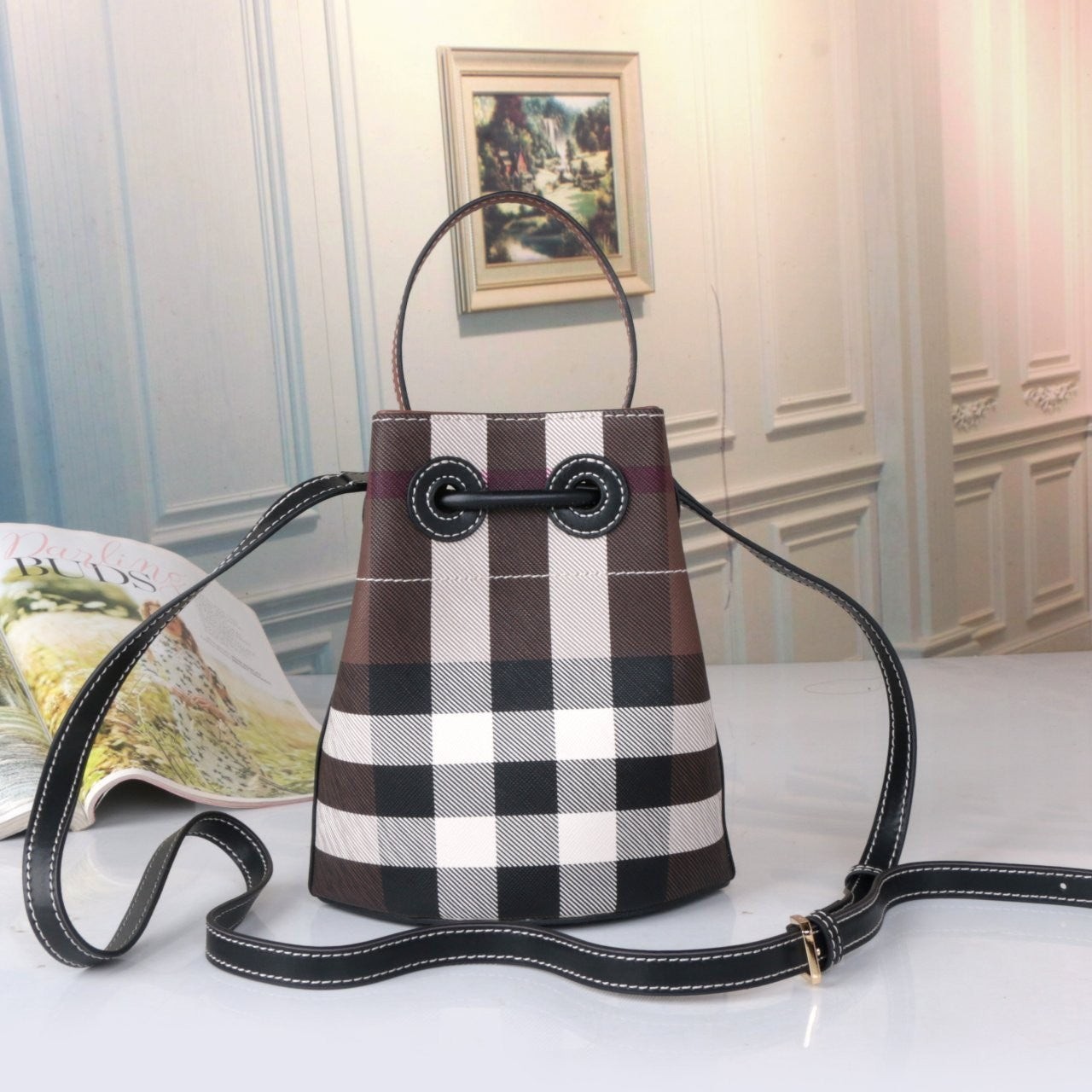 • 버** 체크버킷 (다크브라운)