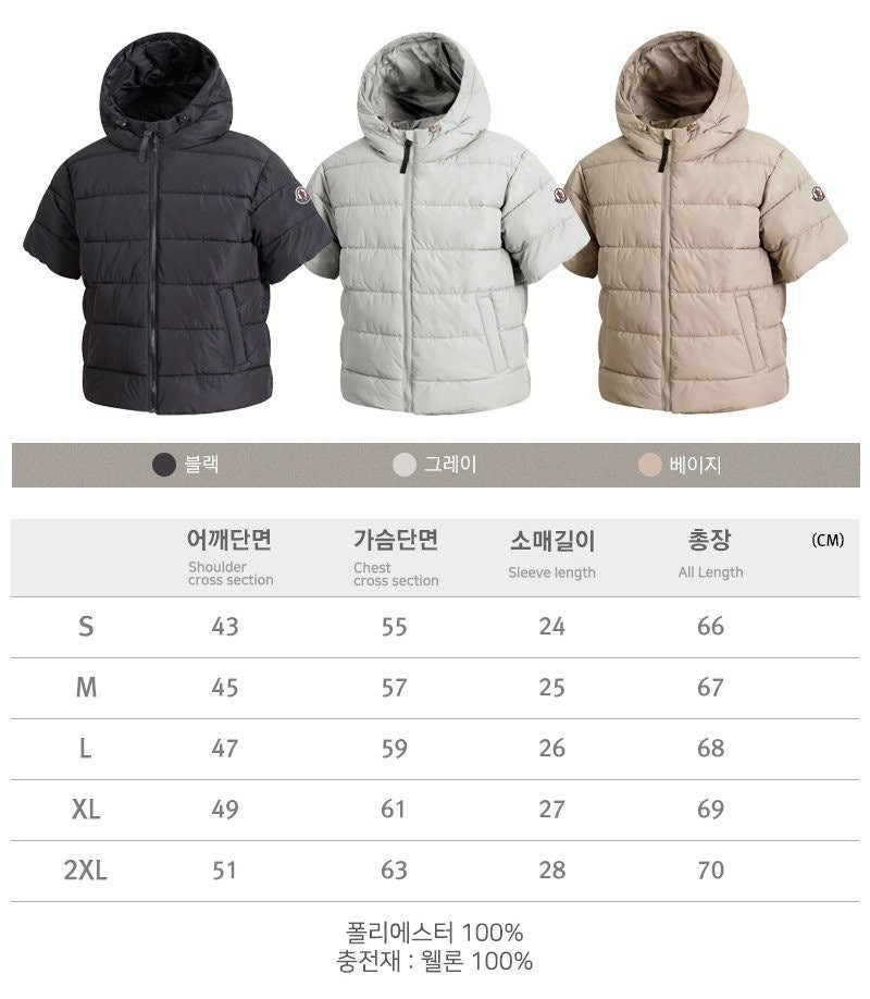 후드 반팔 패딩