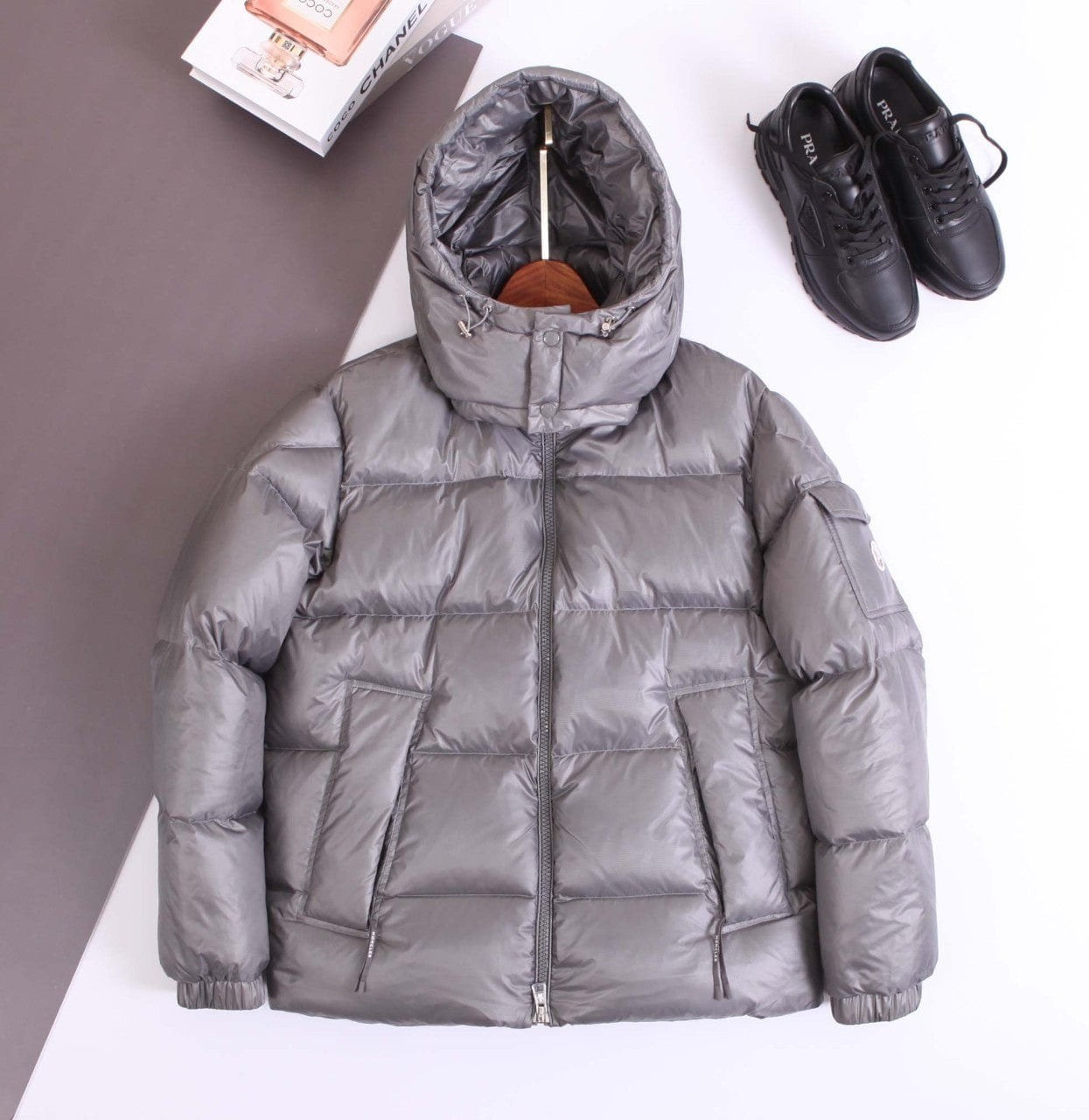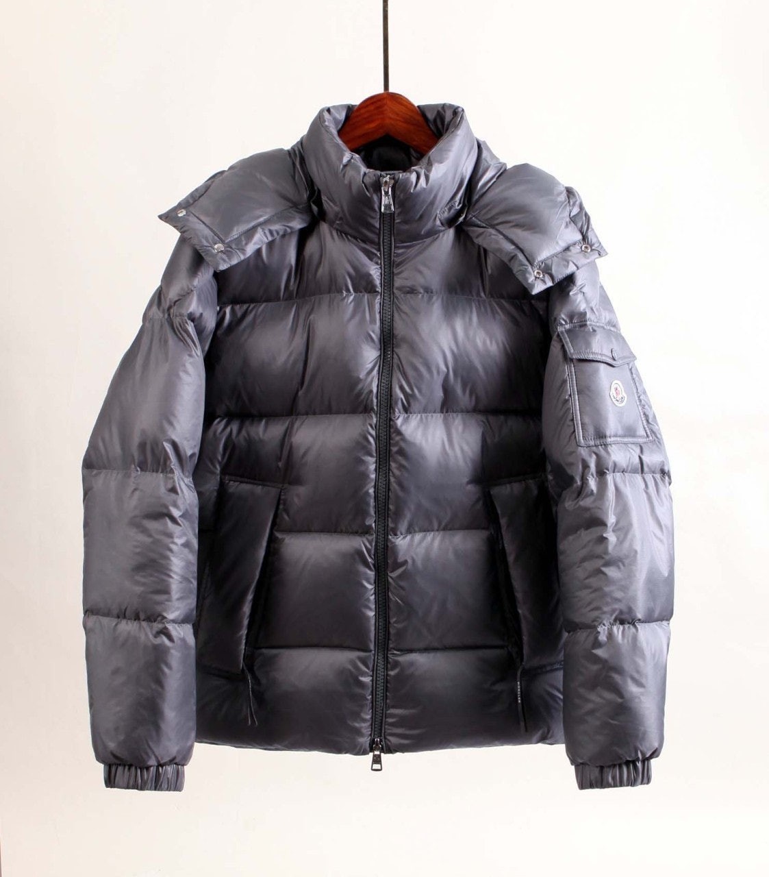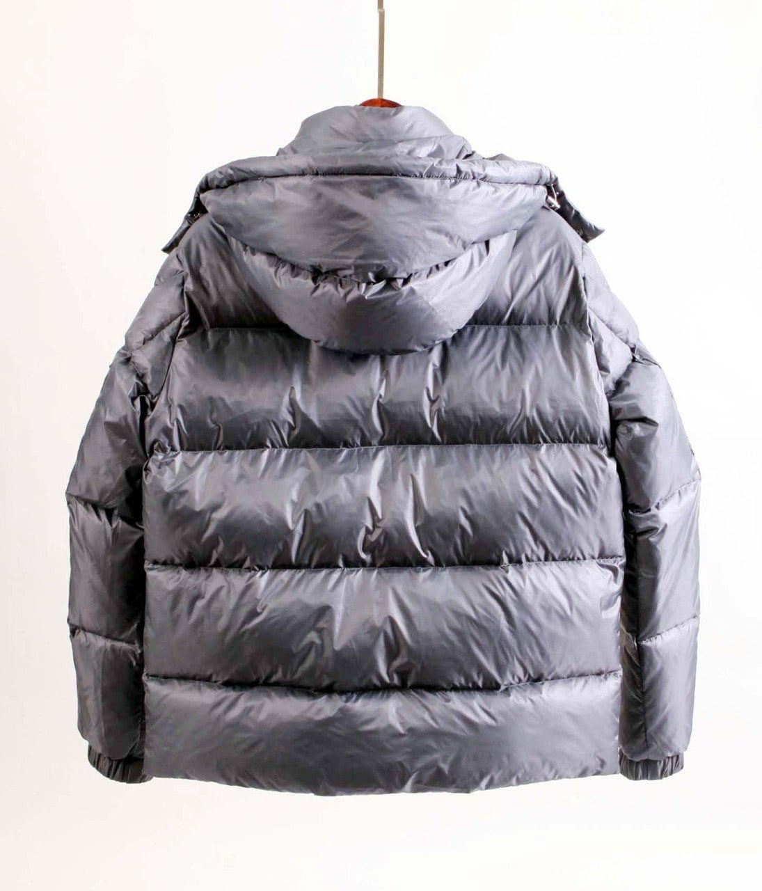 메탈릭 그레이 컬러의 후드 스타일은