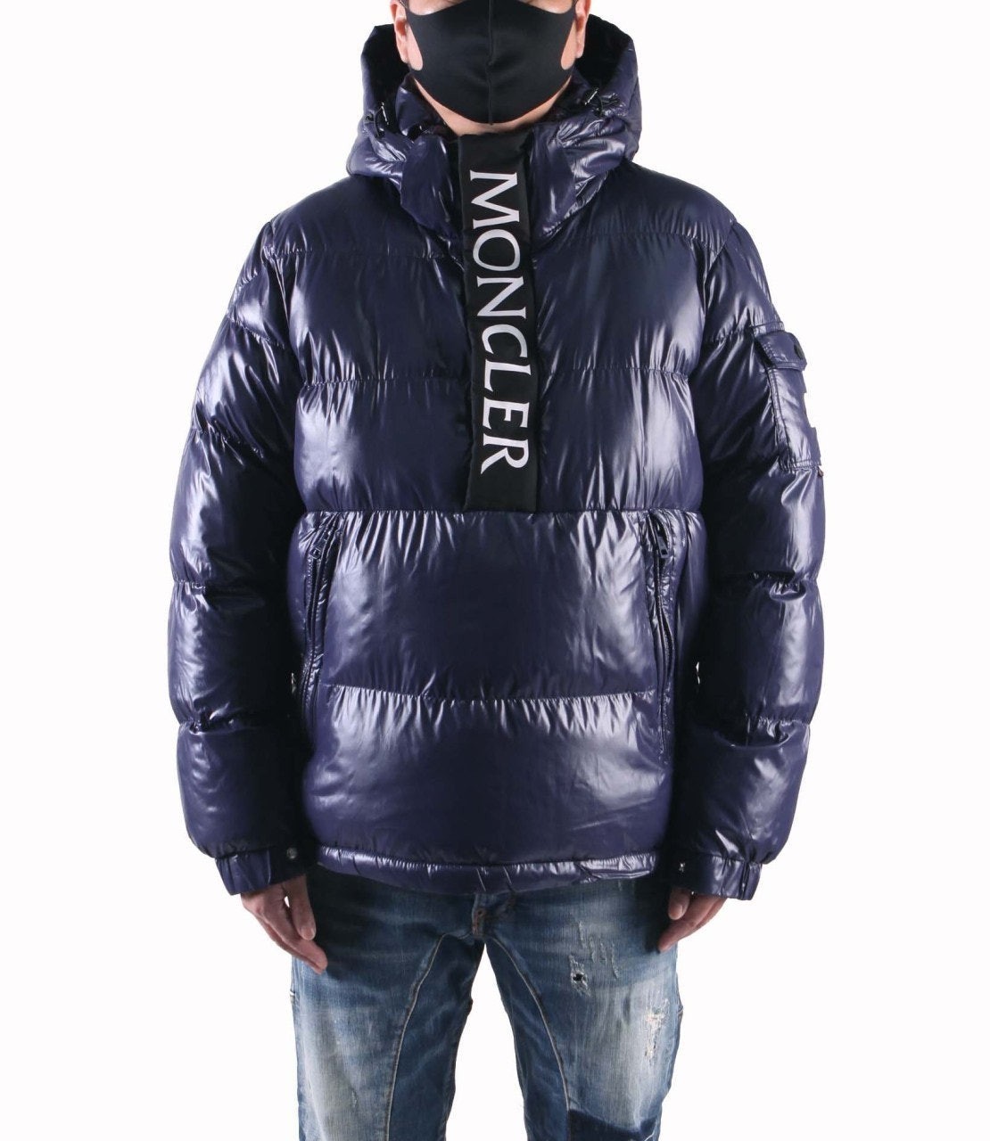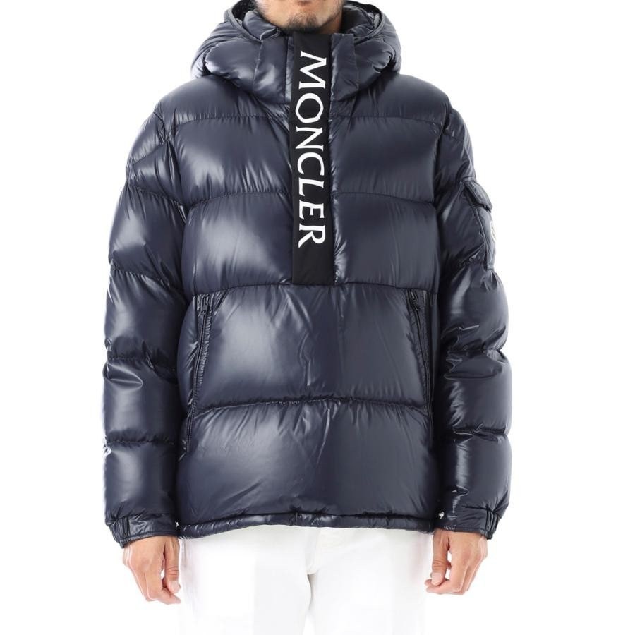 레트로풍의 하프 지퍼는 브랜드 로고가 새겨진 레터링으로