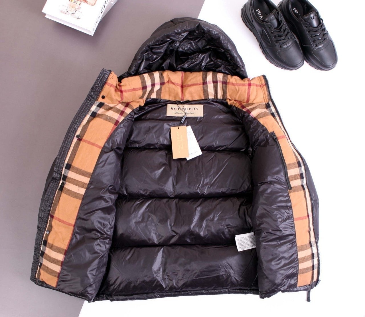 디테일: 체크 패턴, 지퍼 포켓, 조절식 소매, 플랩 여밈, 소매 로고 포인트