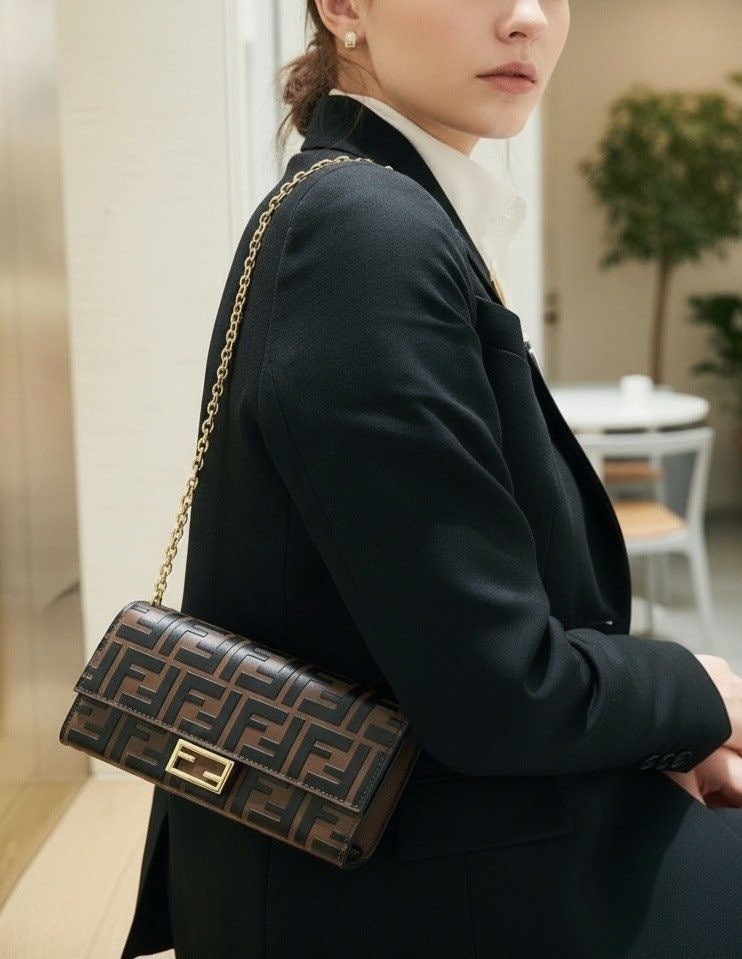• 펜* FF레더 체인플랩 장지갑 수입최고급