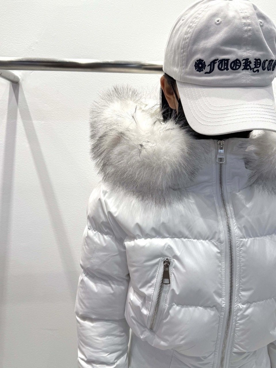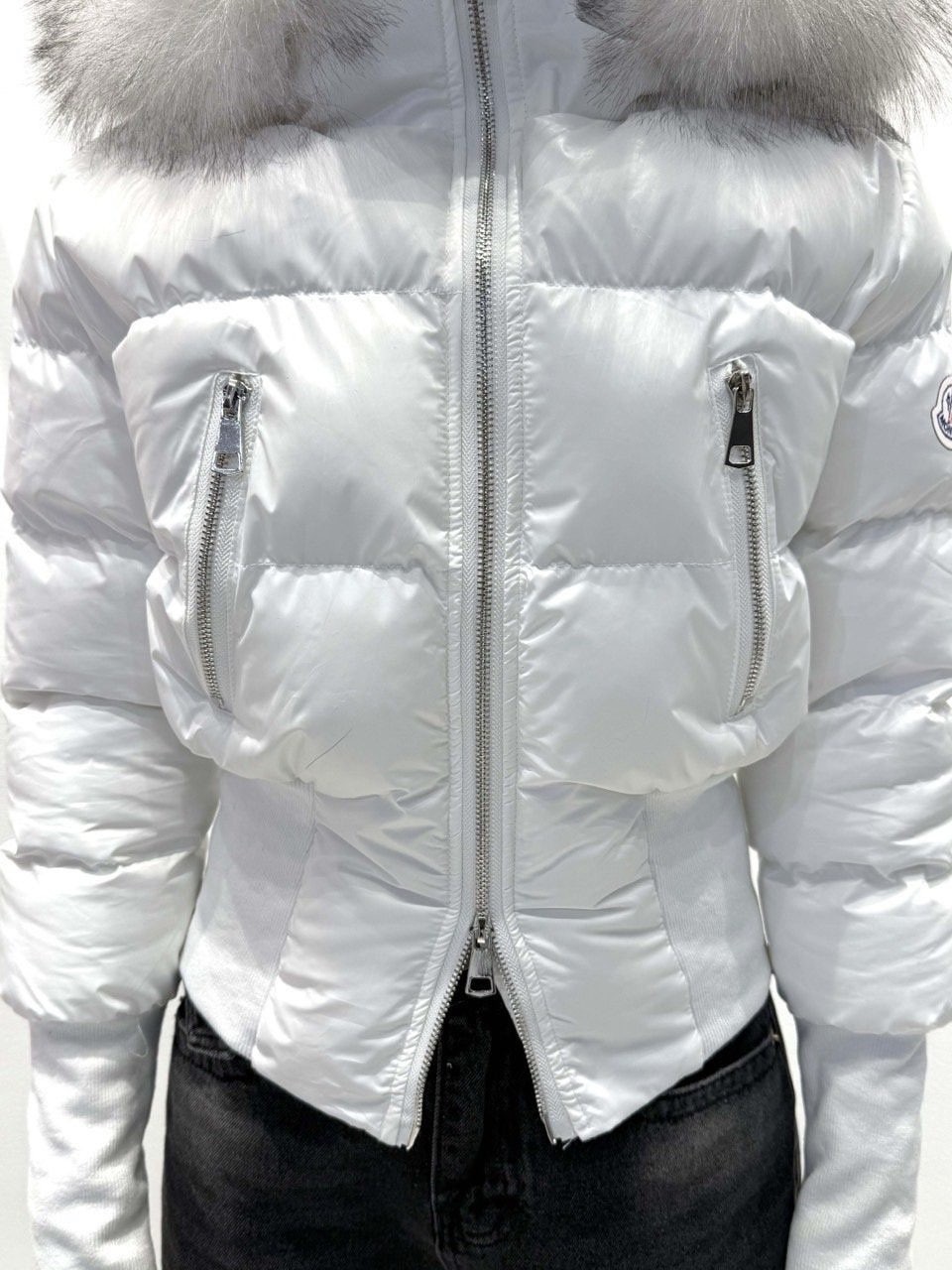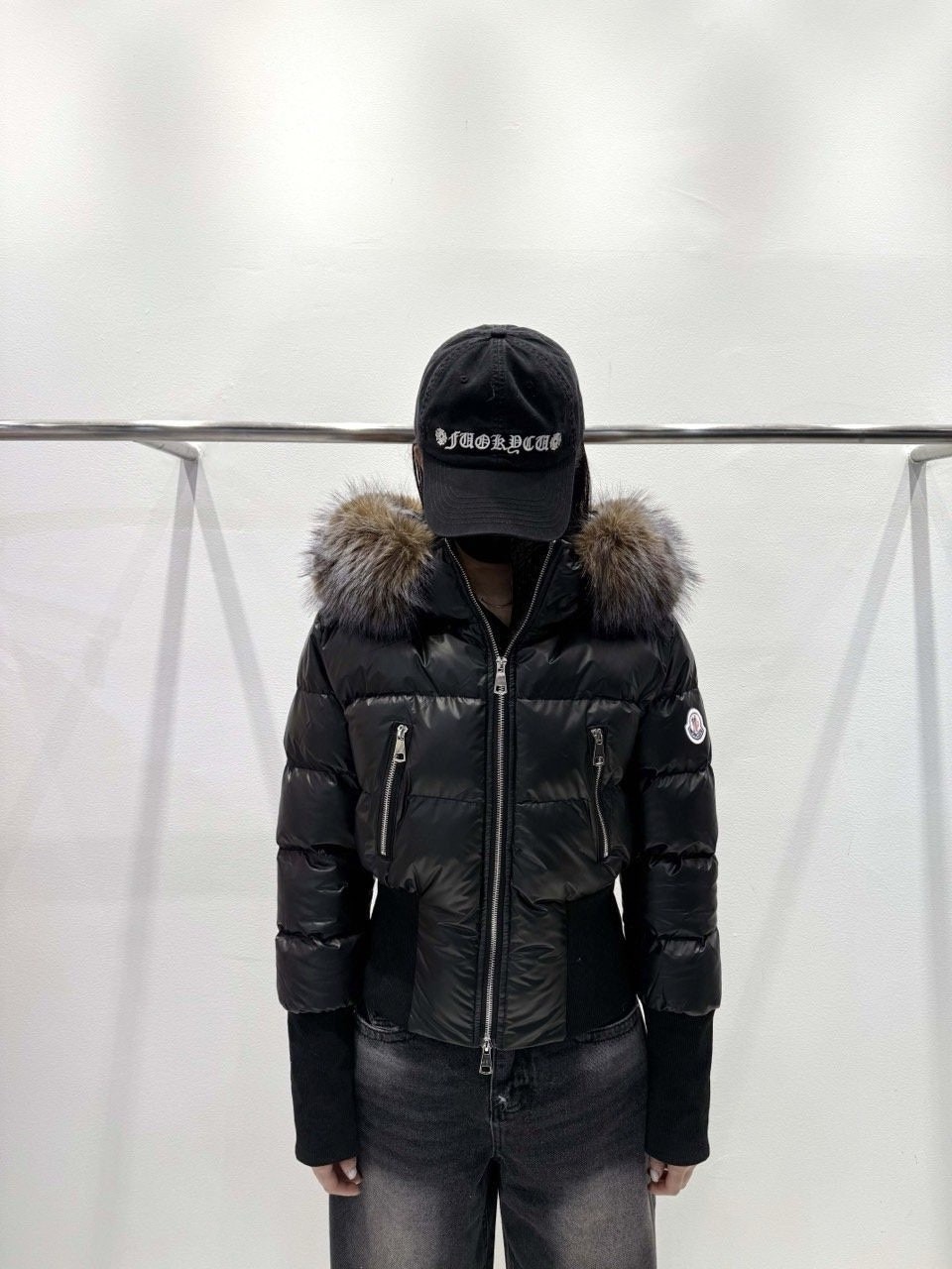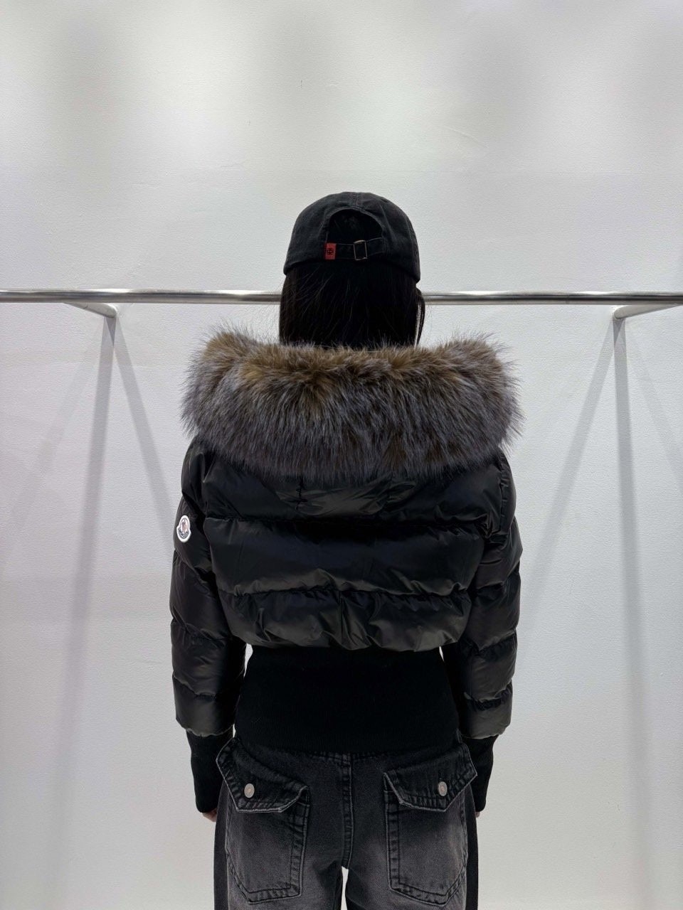 퍼 후드 디테일로 포근하게 입기 좋은 글로시 크롭 퍼 패딩 제품입니다.