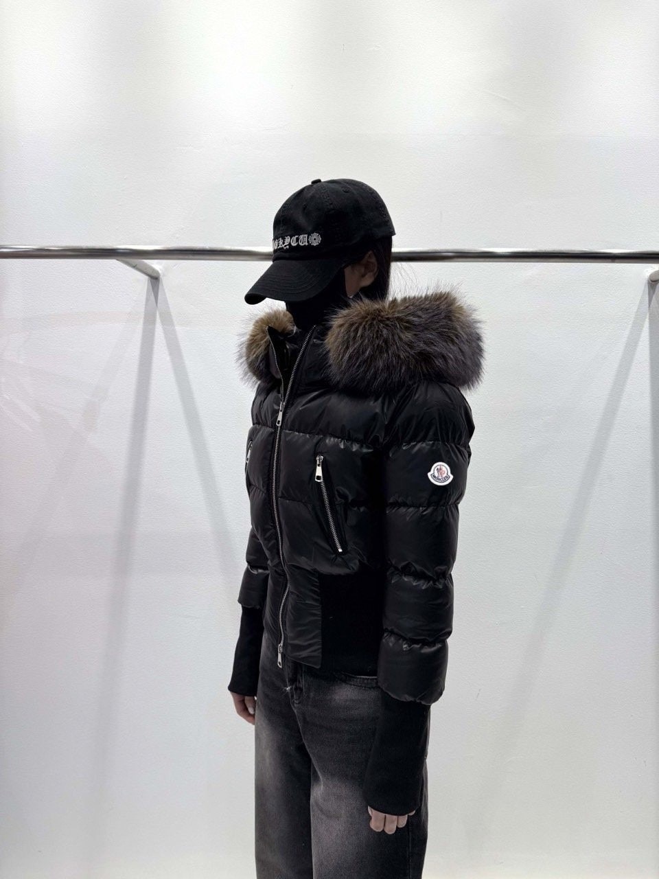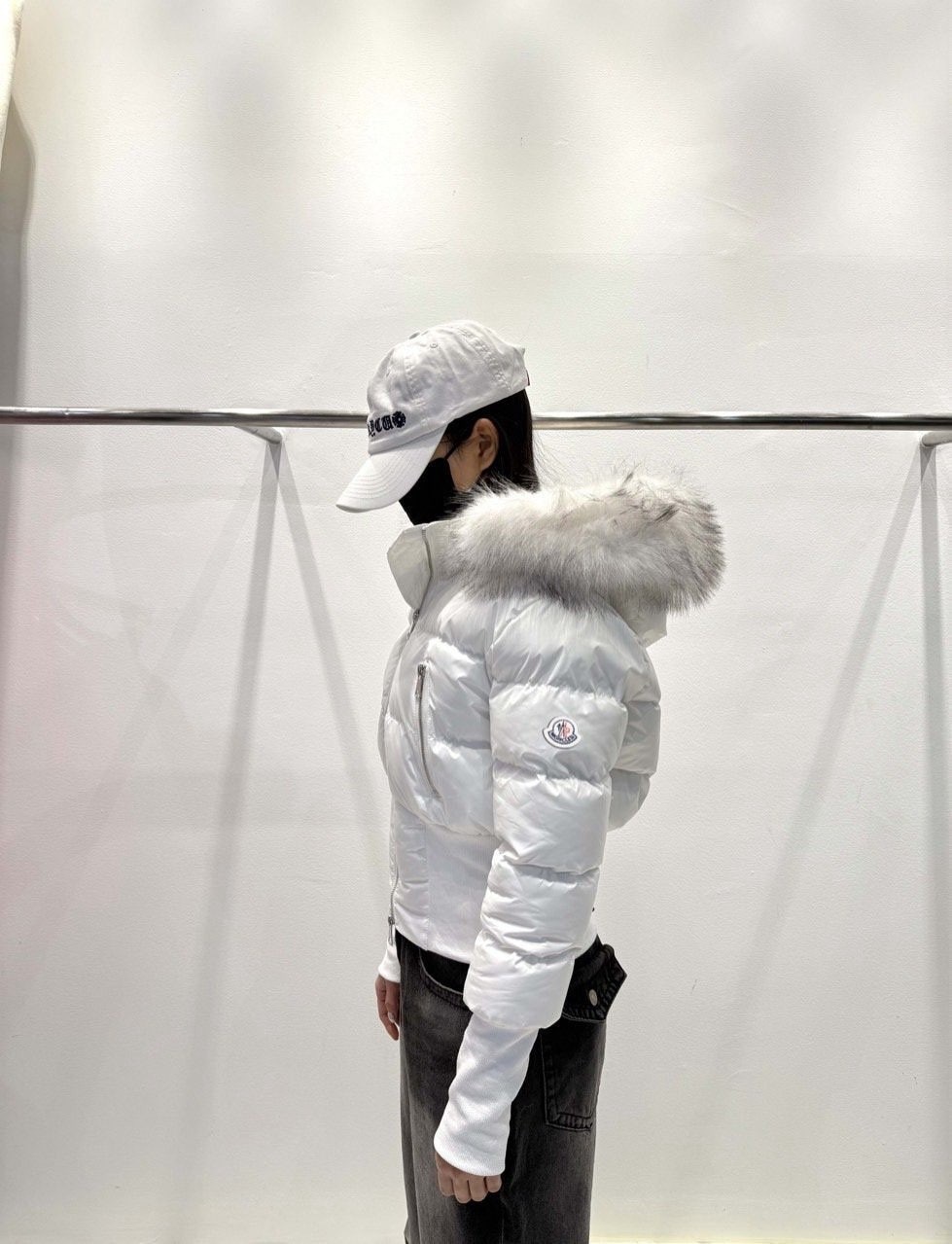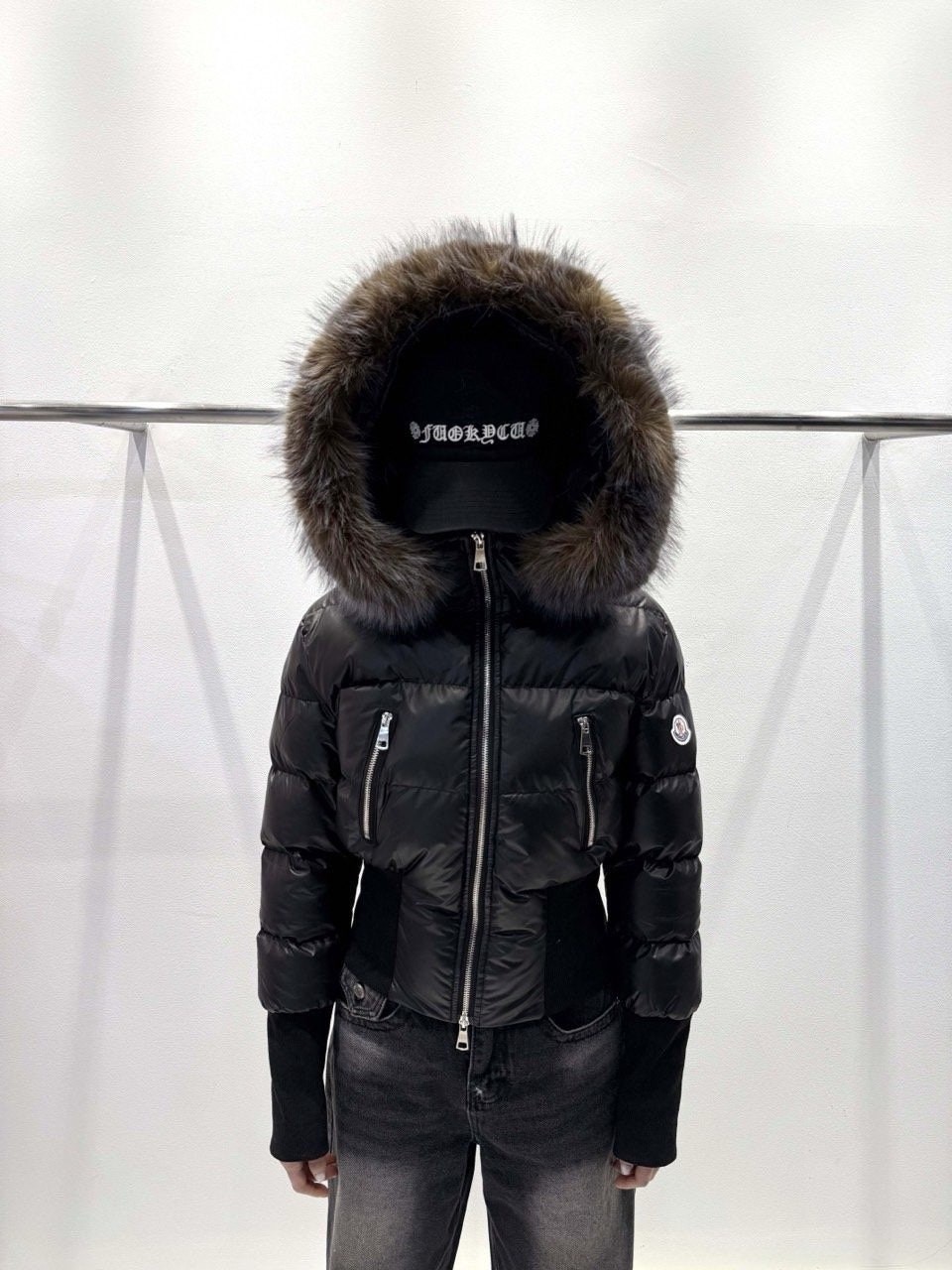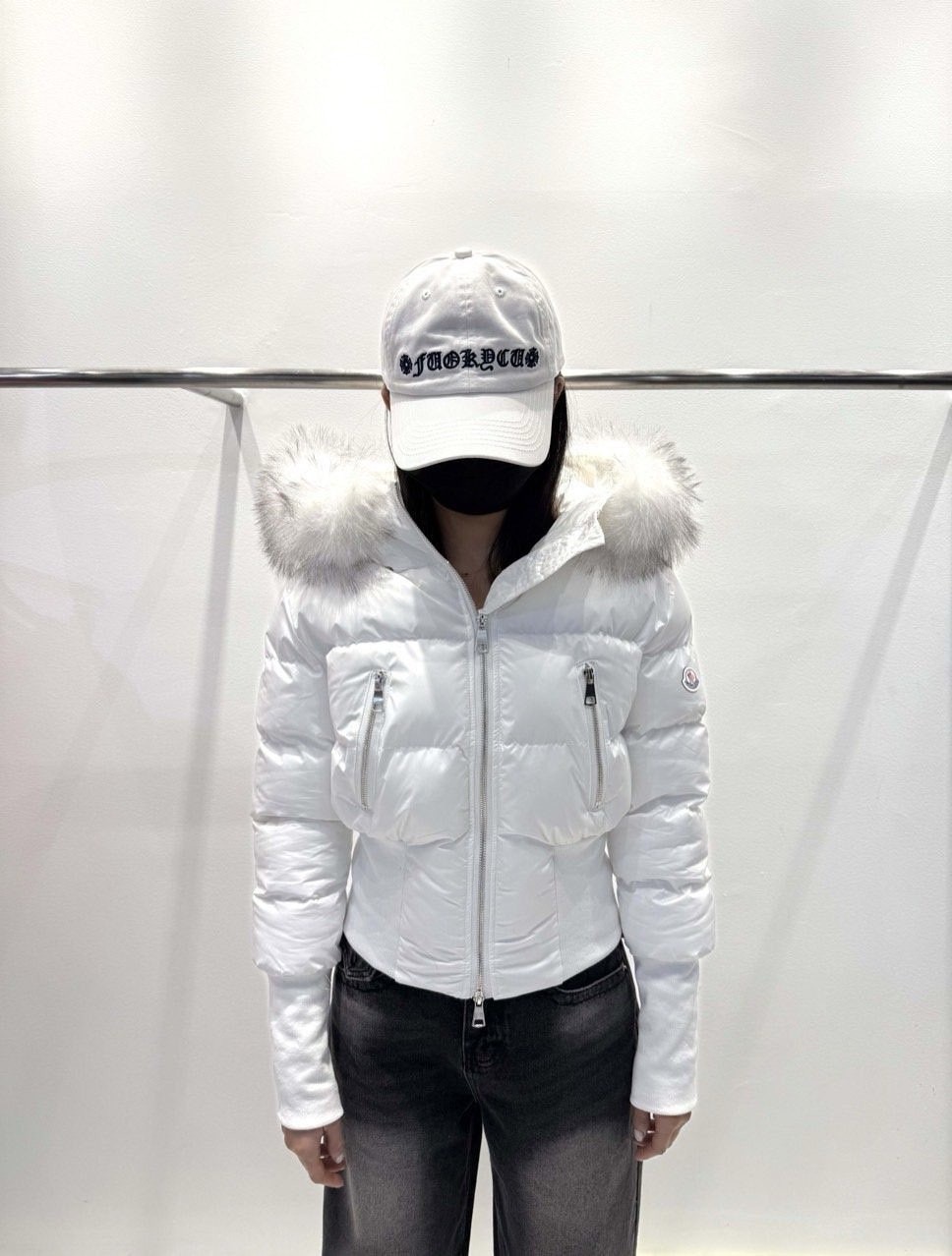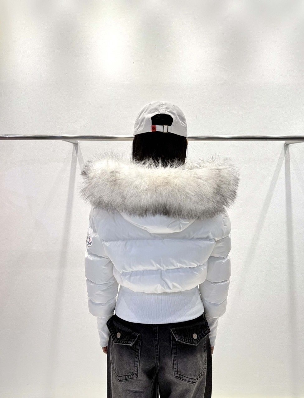 퍼 후드 디테일로 포근하게 입기 좋은 글로시 크롭 퍼 패딩 제품입니다.