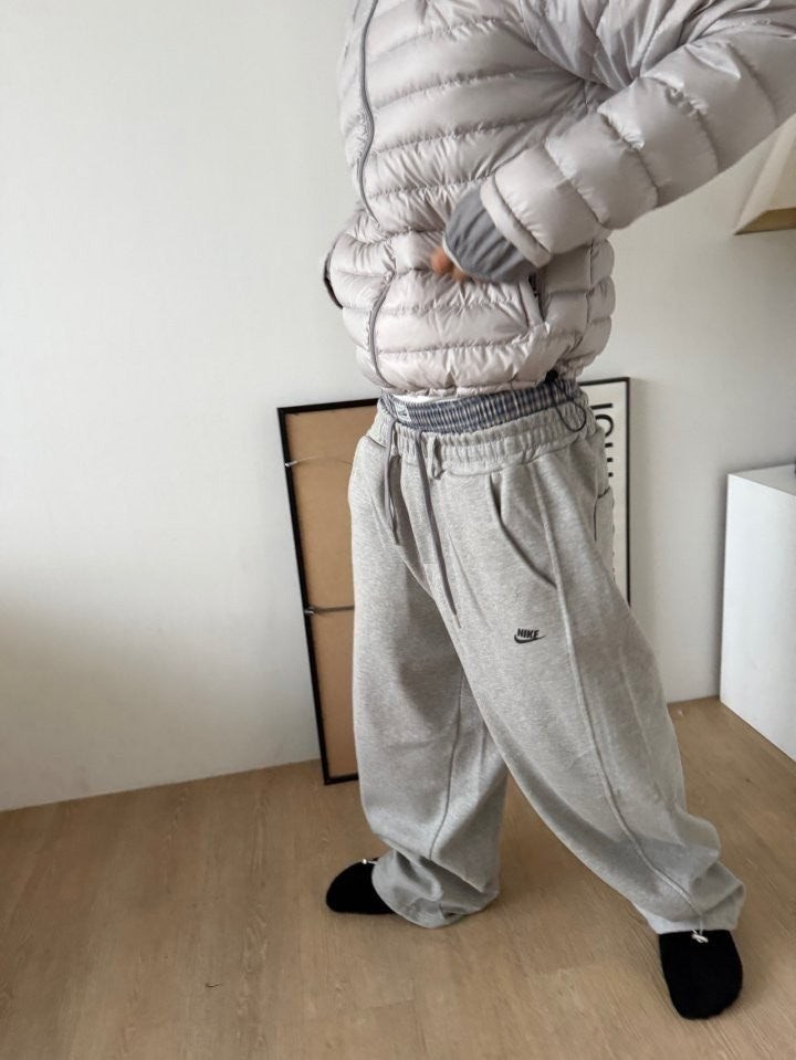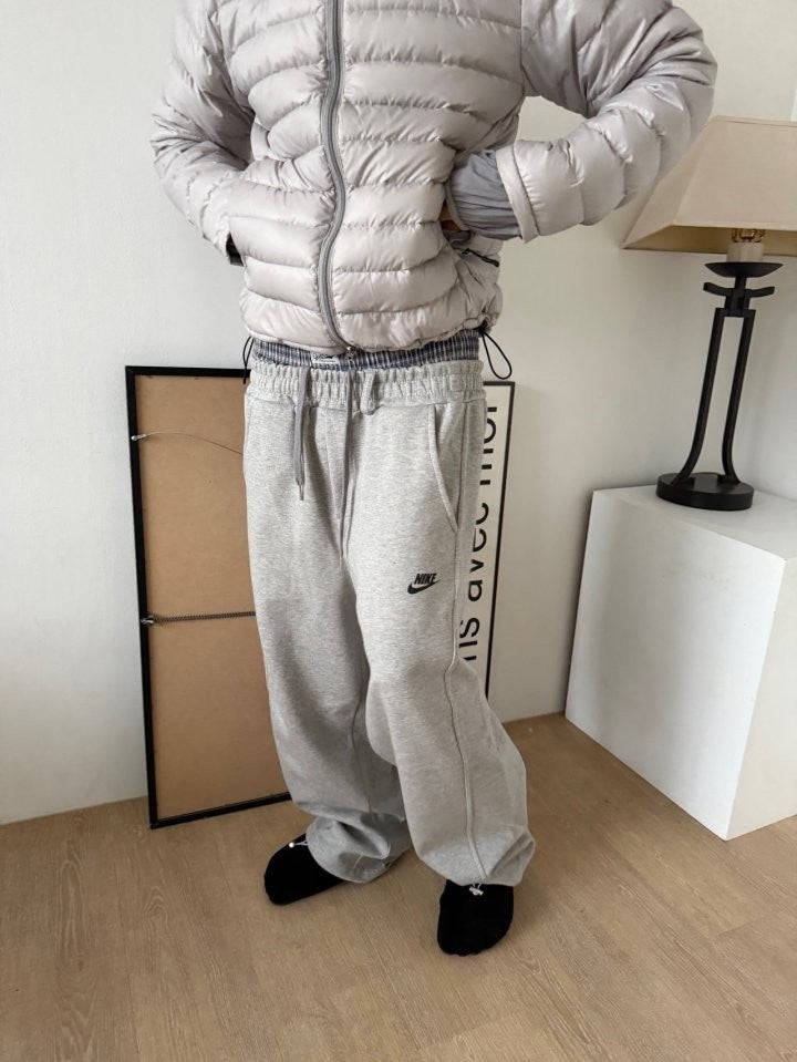 전문웨어의 넉넉한오버핏사이즈로 좋은 재질감으로 간절기에도 사랑받는 스타일입니다. 허리는 편안한 밴딩에 조임끈이 있고 와이드타입의 트레이닝으로 착용감이 좋습니다.