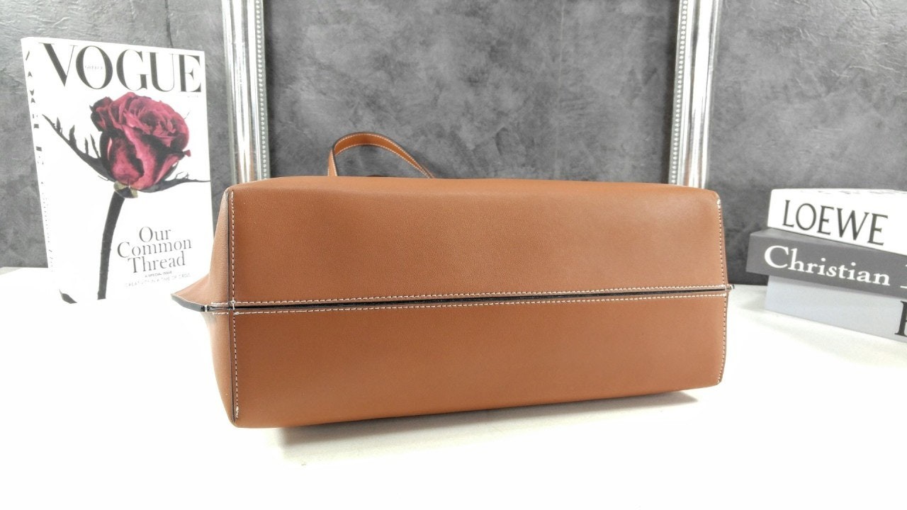 버** 브라운 '모노그램 미디엄' 쇼퍼백. 송아지 가죽으로 제작되었으며, 랍스터 클래스프 잠금장치로 고정됩니다.