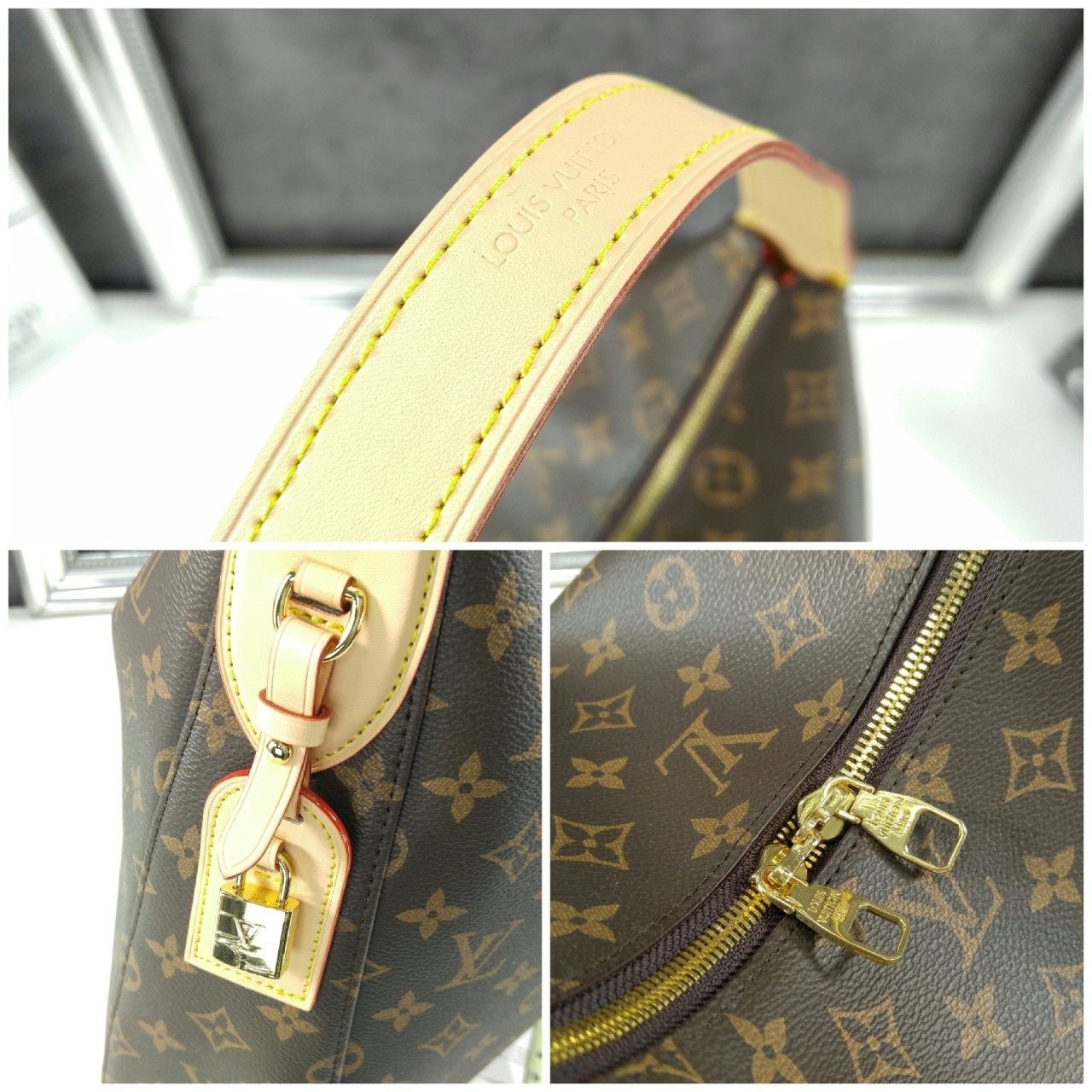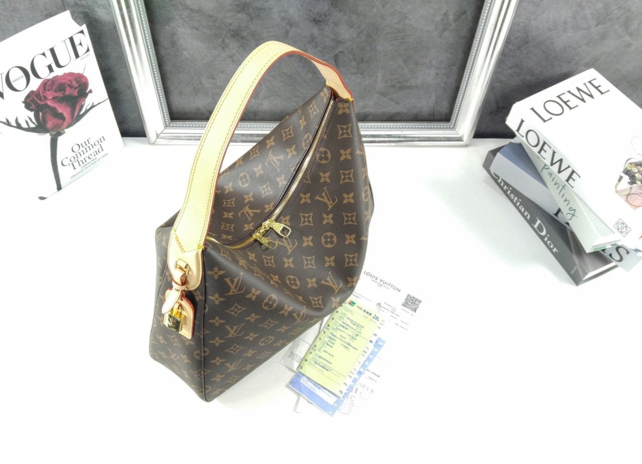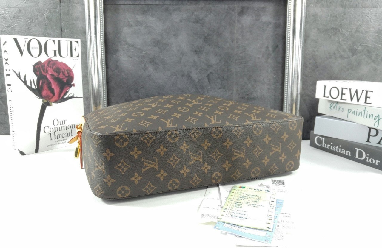출퇴근용뿐만 아니라 다양하게 활용하기 좋은 독특한 실루엣의 슬라우치 MM. 하우스의 상징적인 모노그램 캔버스 소재에 새로운 시그니처 패드락 네임 택 등 골드 색조의 하드웨어로 포인트를 준 우아한 디자인. 컴팩트한 지갑, 스마트폰, 13인치 노트북과 같이 업무 시 또는 주말에 필요한 소지품을 보관할 수 있는 넉넉한 수납공간.